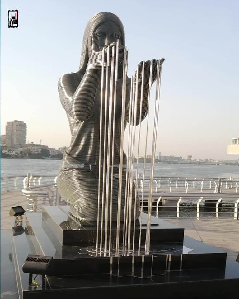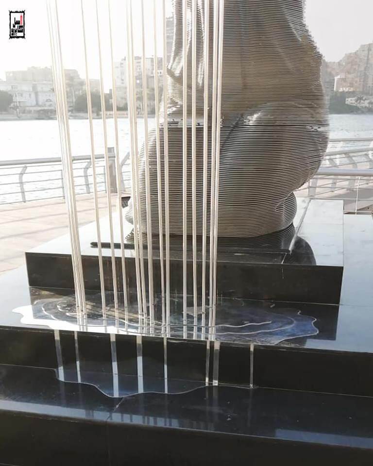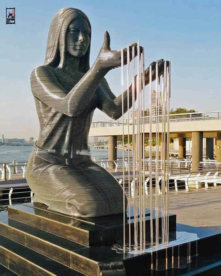 ويجسد التمثال سيدةً تجلس في وضع فرعوني بينما تنساب المياه من بين أصابعها.