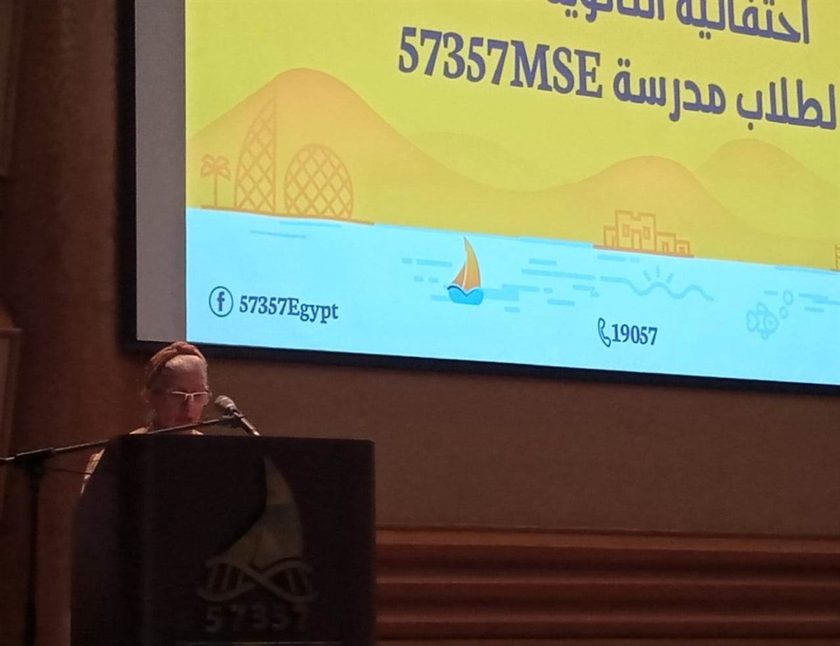 د. معتز الزميتي، المدير الطبي لمستشفى 57357، عرض بعض المعلومات عن عن المستشفى، ونشأتها، وشكل ونوع الخدمة المقدمة، وشكر الطلبة على تفوقهم، مؤكدا لهم "ننتظركم بعد التخرج لتعملوا معنا، فلن تترككم 57357".