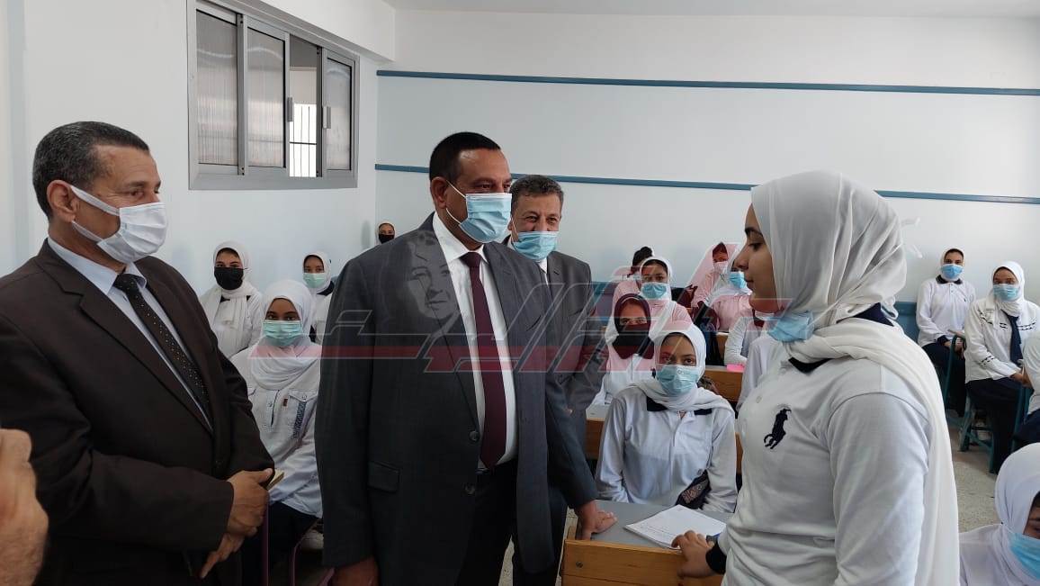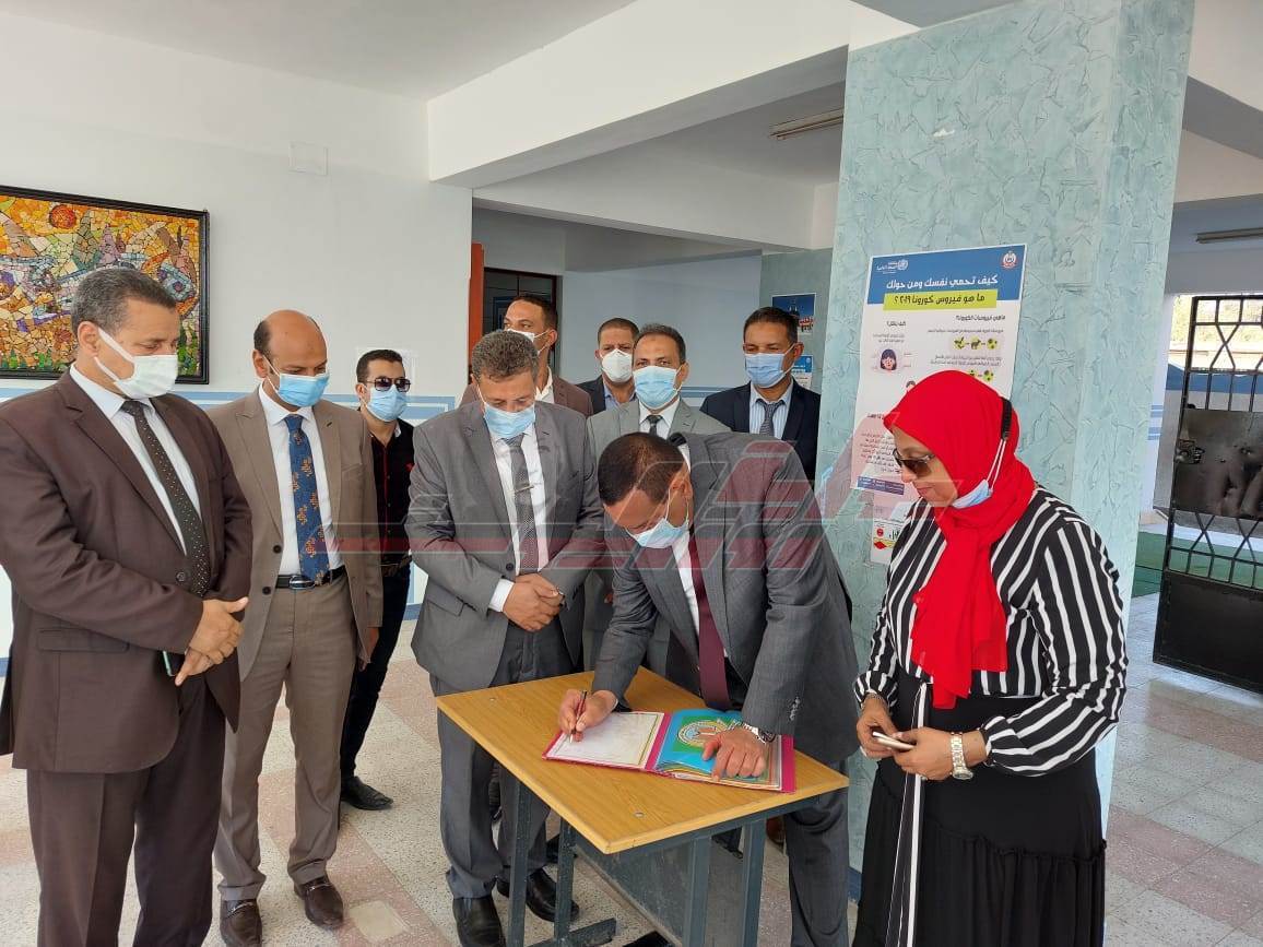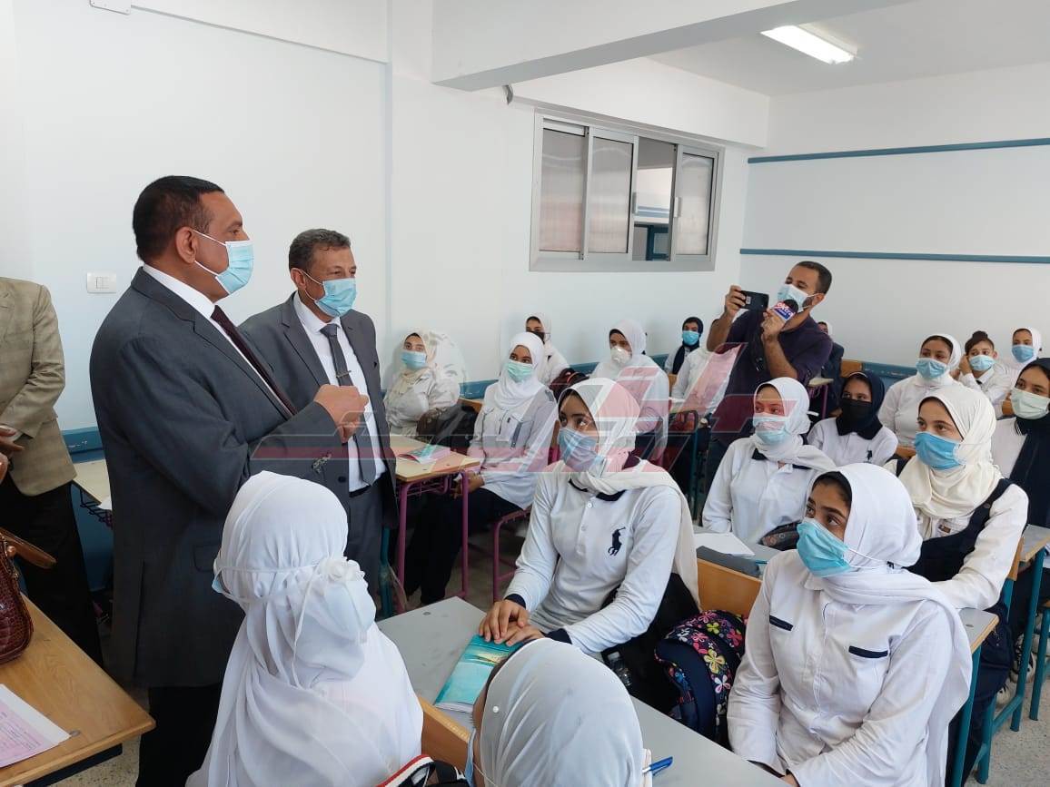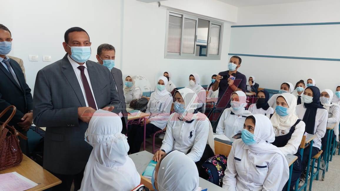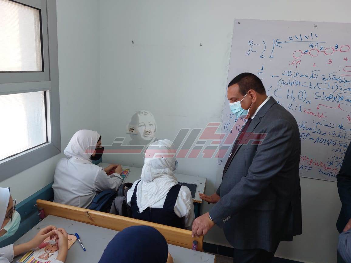 وتابع انتظام الحصص بالفصول والمعامل والمكتبة وغرف الحاسب الآلى والمعامل وفناء المدرسة، وانتظام توزيع الكتب المدرسية، ونظافة دورات المياه وتوفير الماء والمطهرات باستمرار وتطبيق الإجراءات الاحترازية داخل الفصول وأثناء دخول وخروج الطلاب وعلى مدار اليوم الدراسى.