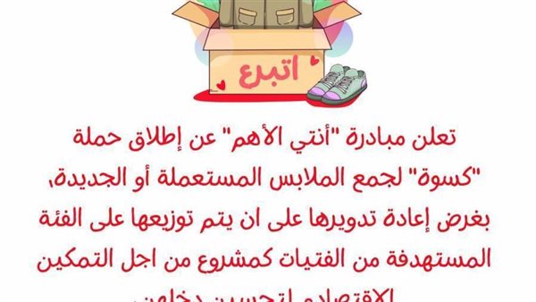 "أنتي الأهم" تناشد الفنانين والإعلاميين للانضمام لحملة "كسوة" للتبرع بالملابس المستعملة