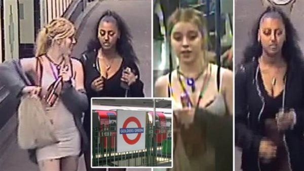 نشرت كاميرات المراقبة في محطة مترو أنفاق جولديرز جرين، ببريطانيا، قيام فتاتينبتحطيم زجاجة فوق رأس راكب أصيب بجرح عميق في جانب جبينه بعد الاعتداء.