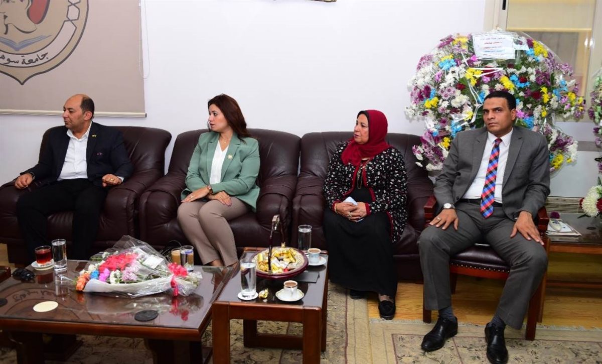 جامعة سوهاج تستقبل وفد الشعب الجمهورى لتقديم التهنئة لرئيس الجامعة ونوابه