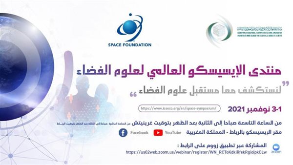 تنطلق ، بعد غد الاثنين ، أعمال منتدى الإيسيسكو العالمي لعلوم الفضاء في نسخته الأولى، تحت شعار "معا من أجل استكشاف مستقبل علوم الفضاء"، والذي تعقده منظمة العالم الإسلامي للتربية والعلوم والثقافة (إيسيسكو)، بشراكة مع مؤسسة الفضاء الأمريكية، ويشارك فيه مسؤولون بالمنظمات والمؤسسات الدولية المتخصصة، ورواد فضاء، وخبراء وباحثون في علوم الفضاء، من أجل تبادل الخبرات والرؤى حول الجديد في علوم الفضاء والابتكارات والصناعات المرتبطة بها.