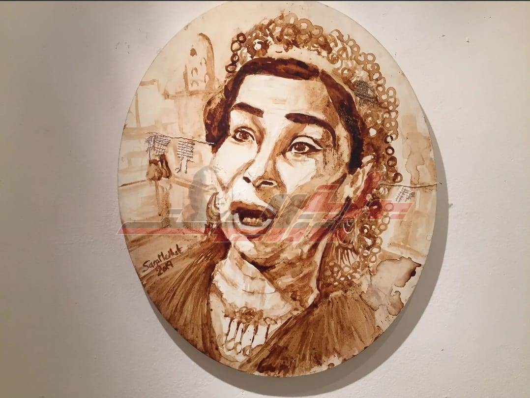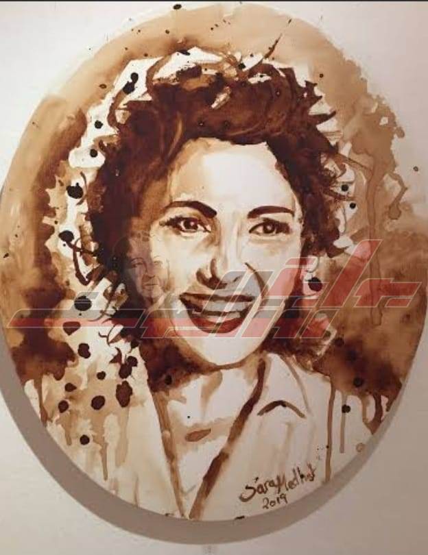 أعمال فنية ترسمها الفنانة سارة مدحت من القهوة وتشكل من خلالها شخصيات فنية مهمة.