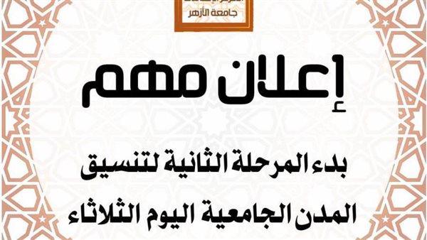 أعلن المركز الإعلامي بجامعة الأزهر بدء المرحلة الثانية لتنسيق القبول بالمدن الجامعية بجامعة الأزهر اليوم الثلاثاء.