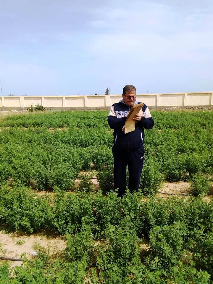 وأشار إلى أنه تم أخذ الحشة السادسة من تجربة تقييم أصناف البرسيم الحجازى الخمسة التابعة للشركات تحت ظروف شمال سيناء بنظام الرى بالتنقيط ، وما زال البرسيم الحجازى يثبت جدارته وتربعه على عرش المحاصيل العلفية الخضراء المعمرة، حيث صمد في مواجهة العطش لما يتمتع بخصائص تؤهله لمقاومة الجفاف، وأهمها تعمق الجذور الوتدية لأعماق قد تصل الى ثمانية أمتار بالاضافة الى كثرة أعداد الجذور العرضية بمنطقة سطح التربة واستغلال كل قطرة مياه، سواء سطحية أو عميقة، علاوة على امتلاكه للعقد البكتيرية التي تثبت الآزوت الجوي بما يعادل حوالى ٨٠ كيلوجراما نتروجين حيوى خلال موسم النمو ، ويتميز بأنه مخصب للتربة بما يتخلف عنه من بقايا الحشات المتتالية بالإضافة لتحمله لملوحة المياه والجفاف، لذلك يطلق عليه قاهر الصحراء.