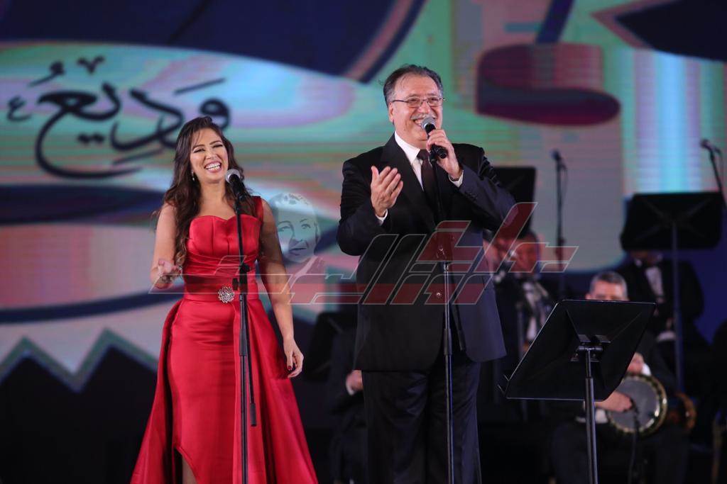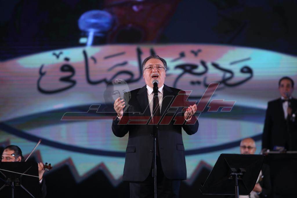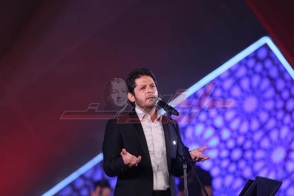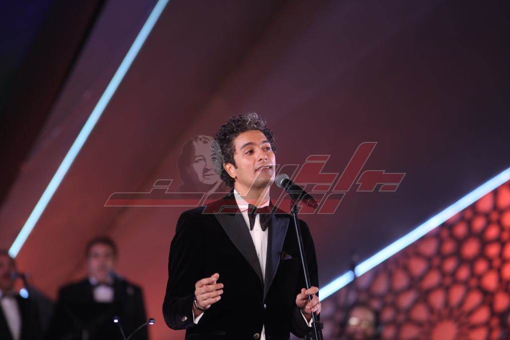 كما قدم الشكر لوزيرة الثقافة والقائمين على المهرجان، ثم ارتدى عباءة الراحل واثبت انه امتداده الابداعى وتغنى بمصاحبة الفرقة الموسيقية بقيادة المايسترو سليم سحاب بنخبة من الاعمال الخالدة للراحل جملت مسرح النافورة كان منها "لبنان يا قطعة سما، بالساحة تلاقينا، يا عيني ع الصبر، دار يا دار، موال الليل يا ليل، موال شاهين، عظيمة يا مصر، وتشاركت معه اميرة أحمد فى أداء حب الدنيا، كما قدمت اغنية "على رمش عيونها".