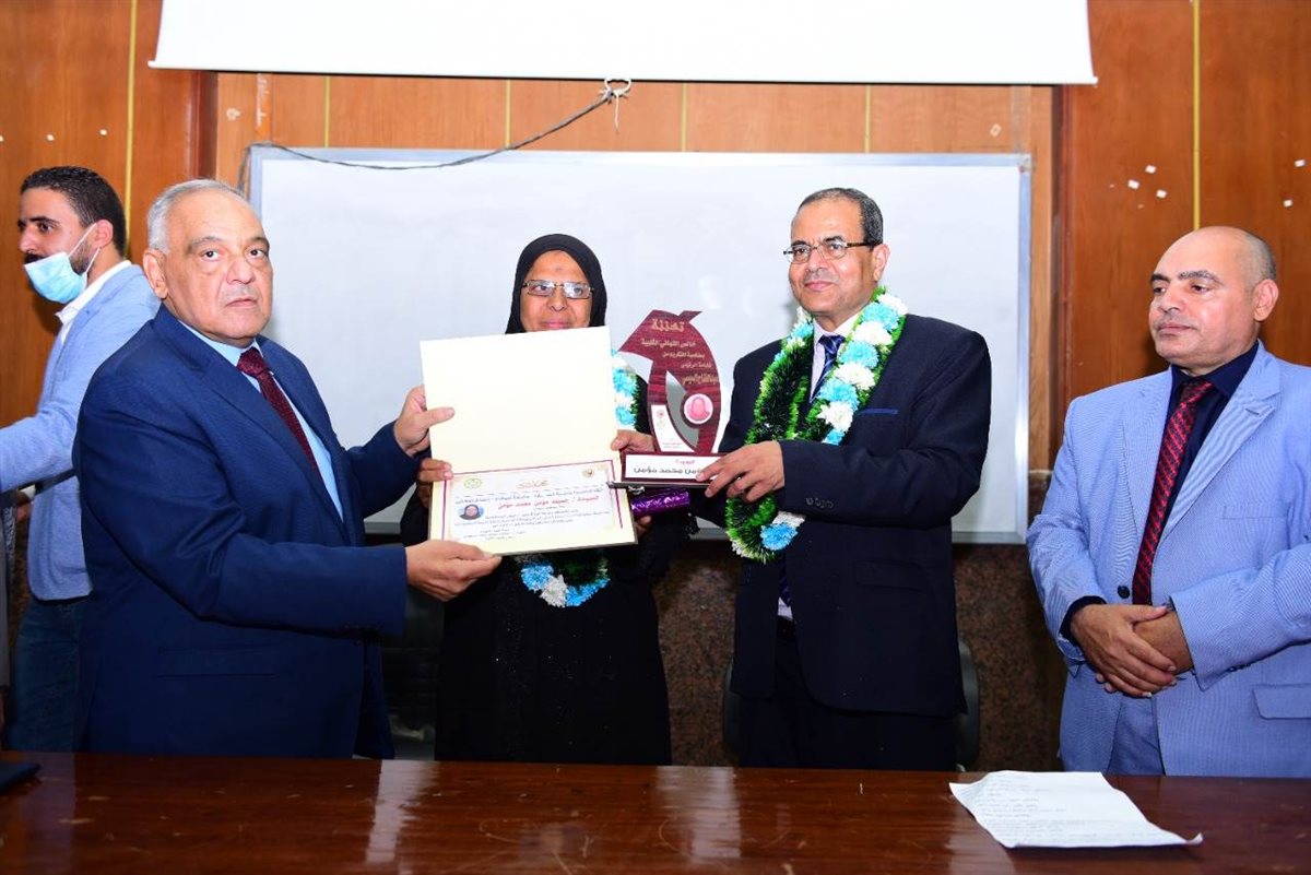 وخلال فعاليات افتتاح المعرض، كرم الدكتور مصطفى عبد الخالق، ابنة سوهاج الحرفية "جميلة مؤمن" صاحبة مشروع الخوص، التي كرمها الرئيس عبد الفتاح السيسي لفوزها بالجائزة الثانية على مستوي الجمهورية في معرض "تراثنا ٢٠٢١".