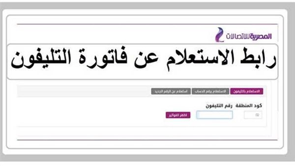 ويمكن للمواطنين المشتركين في خدمة التليفونات المنزلية، الاستعلام عن قيمة فاتورة التليفون المنزلي، وذلك من خلال رابط الشركة المصرية للاتصالات: