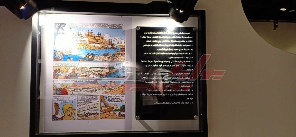 وحضر المعرض وفد من السفارة البلچيكية، والمعرض يتناول مجموعة من الرسومات الأصلية والمنسوخة بجودة عالية للقصص المصورة، التي تحتوي على رسومات لشخصيات من الحضارة المصرية القديمة، ولكن برؤية الفنان البلچيكي وملحق فيديوهات مسجلة مع مؤلفي القصص المصورة من بلجيكا، والذين استوحو أفكارهم من مصر، مثل قصص: اليكس، بالك ومورتيمر، آريون، اليكس سيناتور.