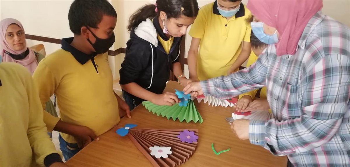 بالإضافة لورشة أشغال يدوية للتشكيل بالورق الكانسون الملون تحت إشراف فاطمة شعبان، إلي جانب ورشة لعمل زهور بورق الفوم الملون تحت إشراف ناريمان نبيل.