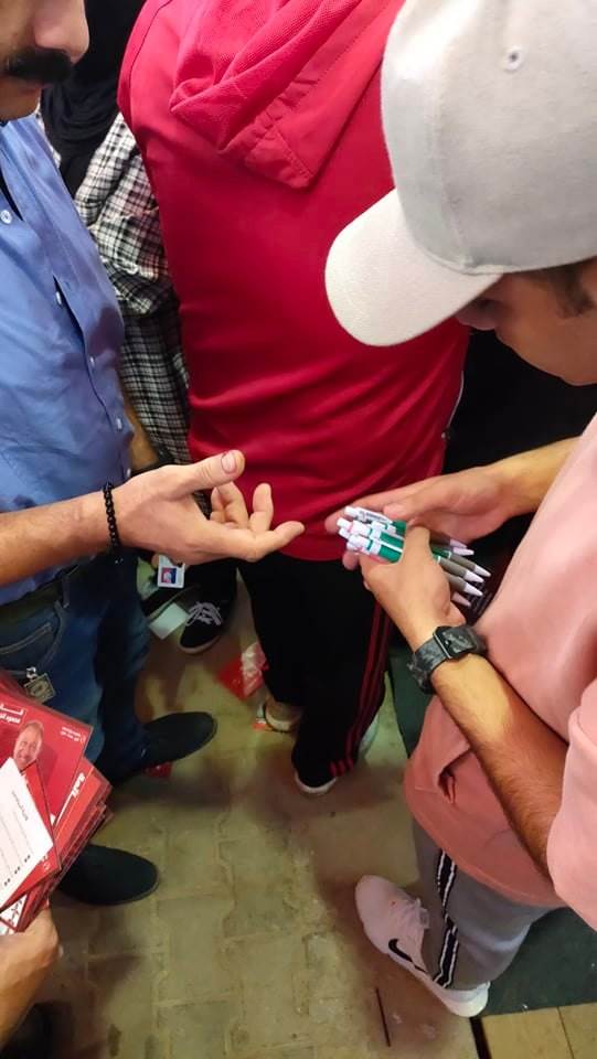 حرص المرشحون في انتخابات النادي الأهلي، اليوم الجمعة، على توزيع الأقلام والنوت والمياه، كدعاية انتخابية على أعضاء الجمعية العمومية بالقلعة الحمراء.