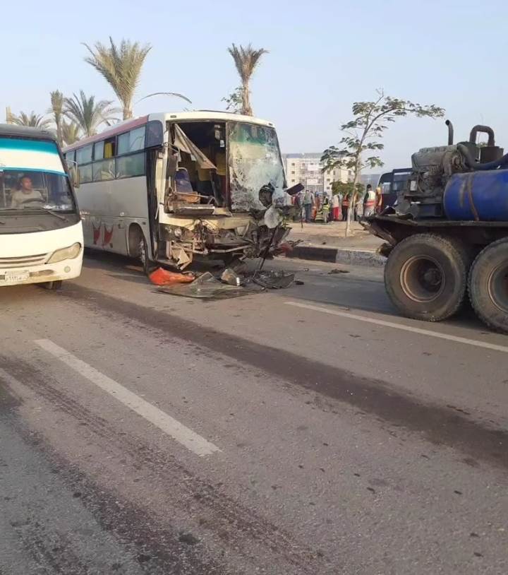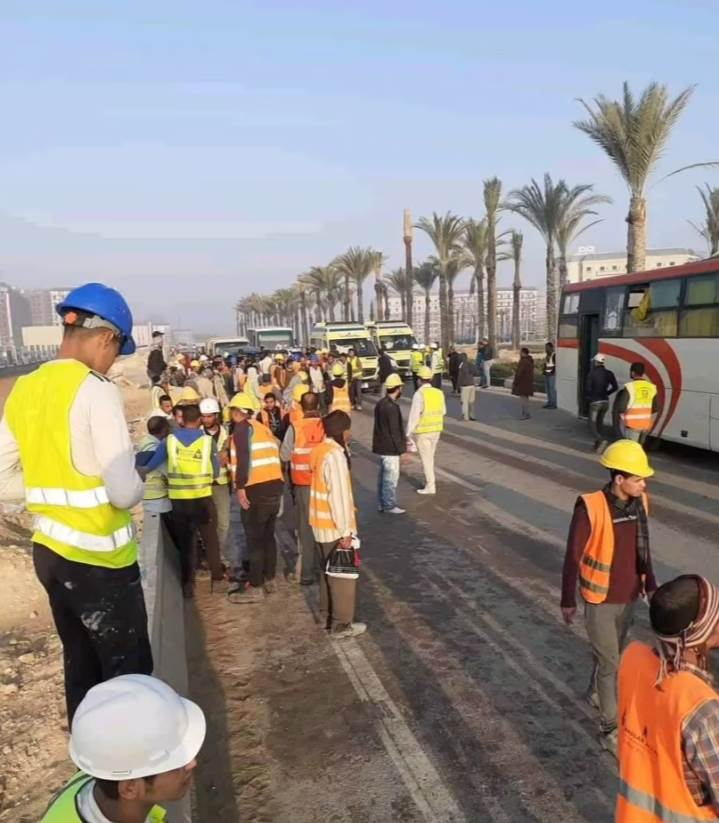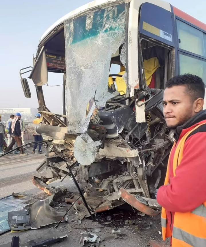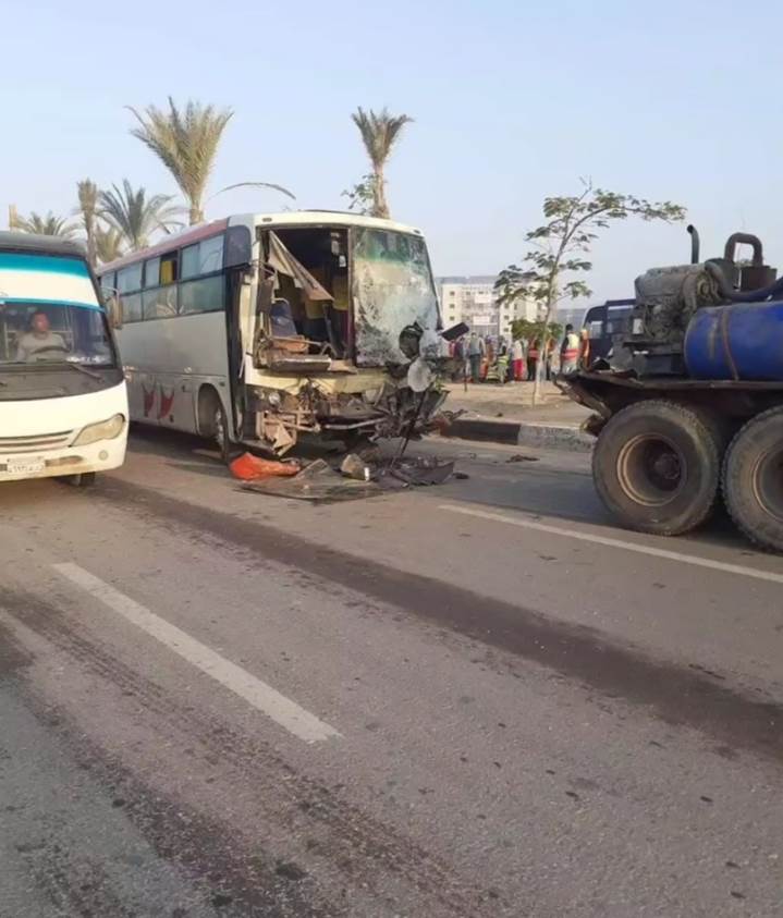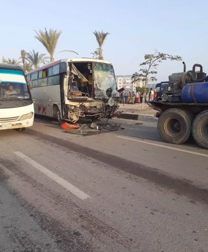 بالأسماء.. إصابة 39 عاملا في تصادم أتوبيس تابع لشركة أوراسكوم مع سيارة نقل ثقيل بالعلمين