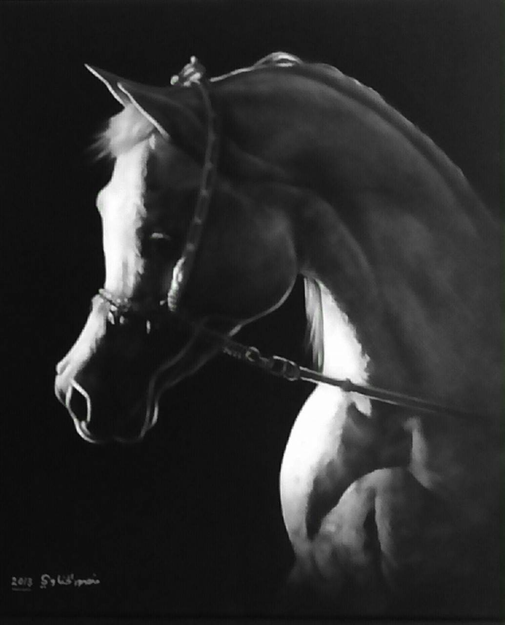 إتقان التصوير الفوتوغرافى وكثرة القراءة، يعد المدخل لفهم أسباب الشغف الشديد بالتفاصيل العضلية فى رسم منصور الحناوى للخيول العربية، فهو لا ينقلها باعتبارها النموذج الأمثل للقوة والجمال، ولكن باعتبارها انعكاس لقوة وجمال الروح الداخلية لهذا الكائن النموذجى.