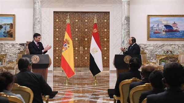 أشاد الرئيس عبد الفتاح السيسي رئيس الجمهورية، في كلمته خلال المؤتمر الصحفى المشترك مع بيدرو سانشيز رئيس حكومة مملكة إسبانيا الصديقة، بالتعاون المصري-الإسباني في العديد من المشروعات الاستثمارية والتنموية الهامة.