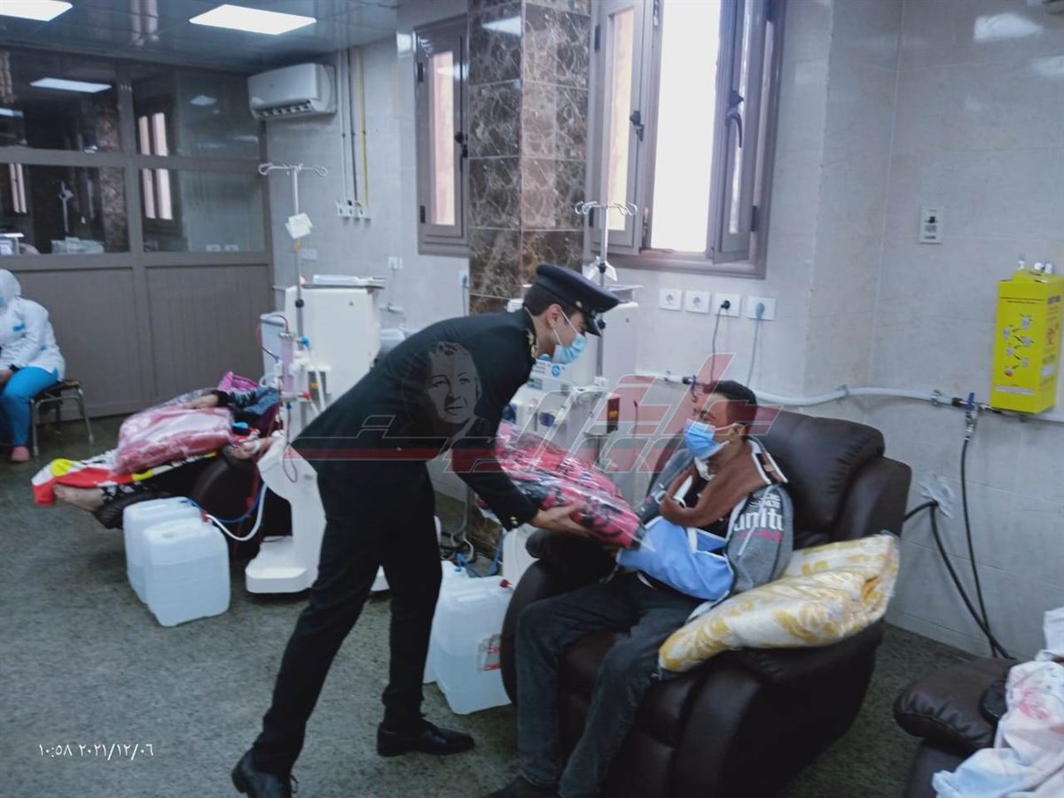 وقام الضباط والضابطات بتوزيع عدد 50 بطانية على المرضى الأكثر احتياجًا من مرضى غسيل الكلى بوحدة الكلى الصناعي ومرضى كلى الاطفال بوحدة كلى الاطفال، وذلك في إطار مبادرة رئيس الجمهورية كلنا واحد وتحت رعاية وزارة الداخلية.