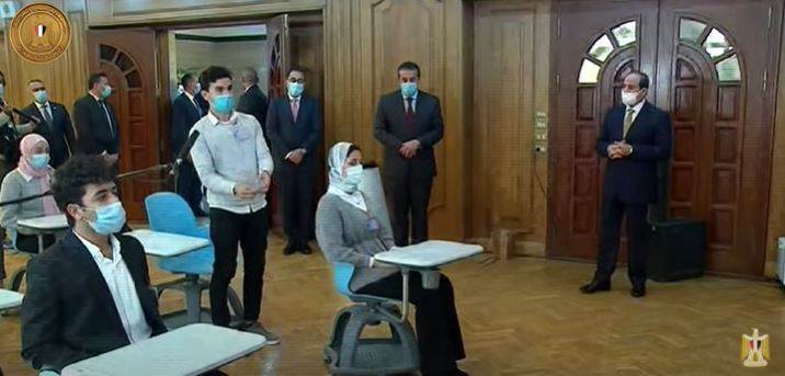 بالصور.. الرئيس السيسي وسط الطلاب في محاضرة عن الذكاء الاصطناعي بجامعة كفر الشيخ