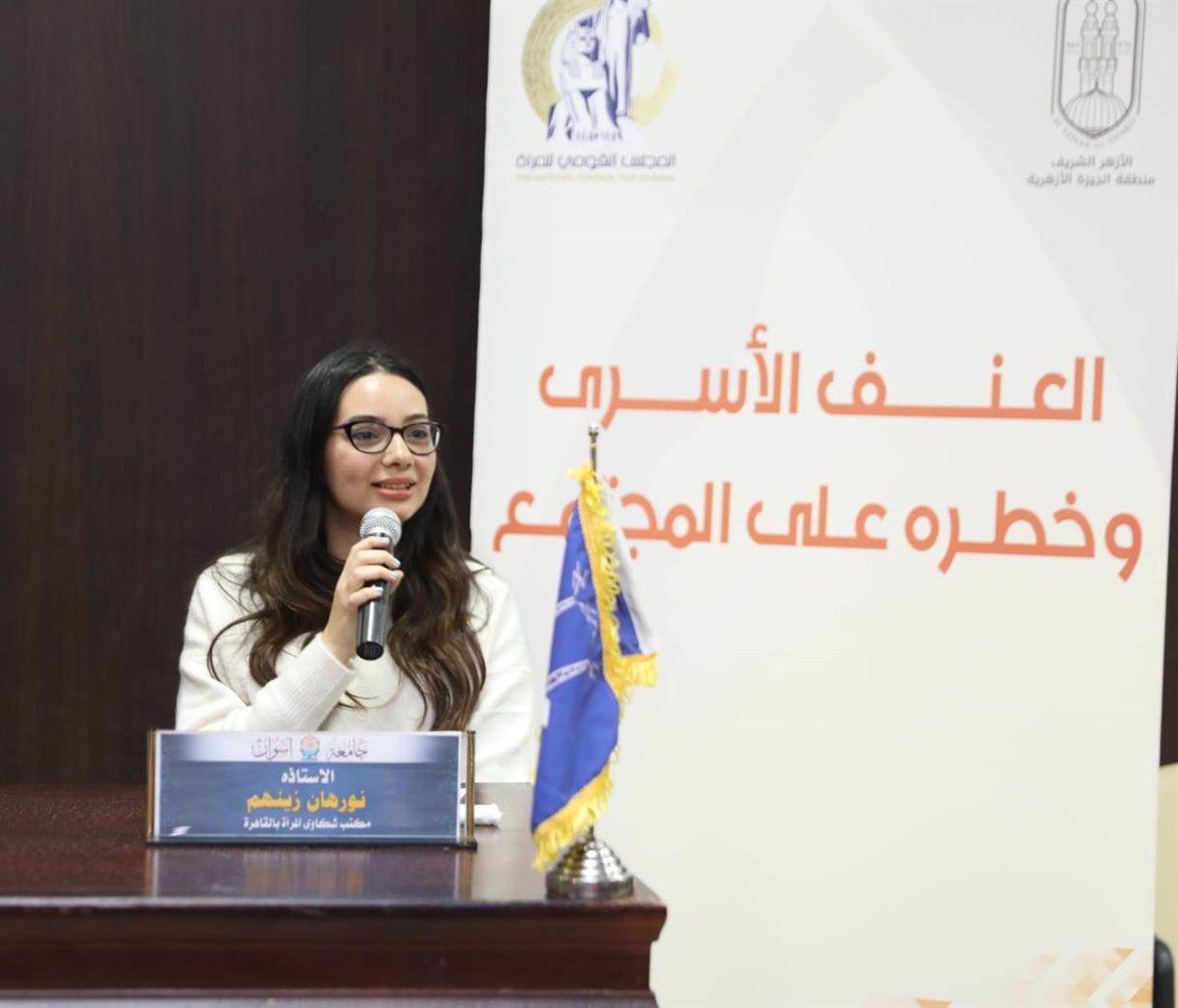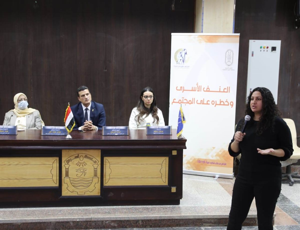 أقام المجلس القومي للمرأة اليوم لقاء بكلية الزراعة جامعة أسوان، ضمن فعاليات حملة "مناهضة العنف الأسري وبيان أثره على المجتمع"، والتي ينظمها المجلس بالتعاون مع الأزهر الشريف ممثلاً فى مركز الأزهر العالمي للفتوى الإلكترونية، وذلك في إطار حملة الـ ١٦ يوم من الأنشطة لمناهضة العنف ضد المرأة التي ينفذها المجلس هذا العام تحت شعار "كوني" بحضور الدكتورة هدى مصطفى مقررة فرع المجلس القومي للمرأة بأسوان، والدكتور أسامة الحديدي المدير التنفيذي لمركز الأزهر العالمي للفتوى، والدكتور مجدي محمد علي نائب رئيس مستشار رئيس جامعة أسوان، والدكتور رضا السباعي عضو المكتب الفني لفضيلة الإمام الأكبر، والاستاذة نورهان زينهم والاستاذ محمد رمضان ممثلي مكتب شكاوى المرأة بالمجلس القومي للمرأة، بالإضافة إلى عدد من أعضاء هيئة التدريس وطلاب وطالبات الجامعة.