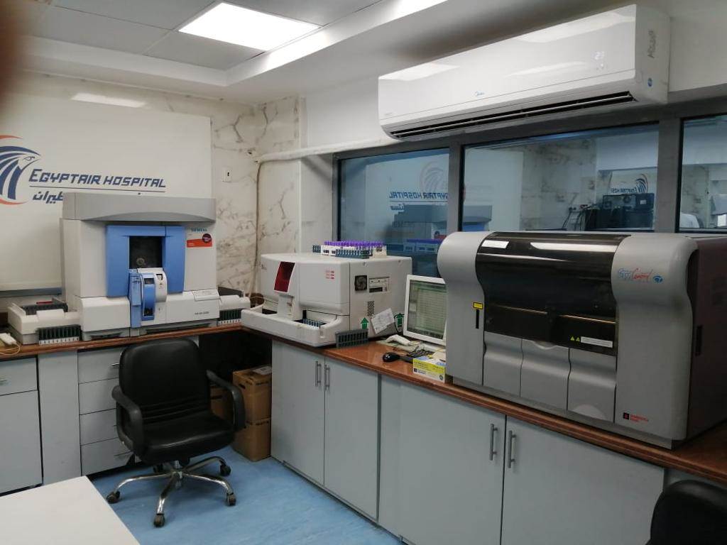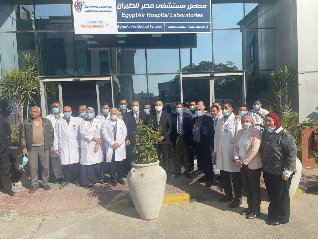 وخلال الزيارة افتتح الوزير اعمال تطوير معامل التحاليل المركزية بمستشفى مصر للطيران حيث تم بدء تشغيل أحدث أجهزة التحاليل الطبية على مستوى العالم ( Atellica Solution ) وهو جهاز يعمل بنظـام Full Automation والذي يضمن السرعة والدقة لنتائج التحاليل الطبية وسلامة العاملين كما تم إنشاء موقع إلكتروني لإتاحة استلام نتائج التحاليل الطبية واستحداث نظام اليكتروني للمعامل والتي تقوم بإجراء تحاليل الكيمياء الاكلينيكية ( تحاليل انزيمات القلب ووظائف الكلى والكبد وتحليل الفيروسات والمناعة ودلائل الاورام وتحاليل أمراض الدم ، الميكروبيولوجي وتحاليل المواد المخدرة والأدوية بالأضافة إلى تحاليل 19 pcr Covid والفيروسات الكبدية وتحاليل الأنسجة والاورام كما أنه يتم حاليا استقدام أحدث جهاز للصبغات المناعية الذي يعمل على زيادة الدقة التشخيصية النوعية للأورام .