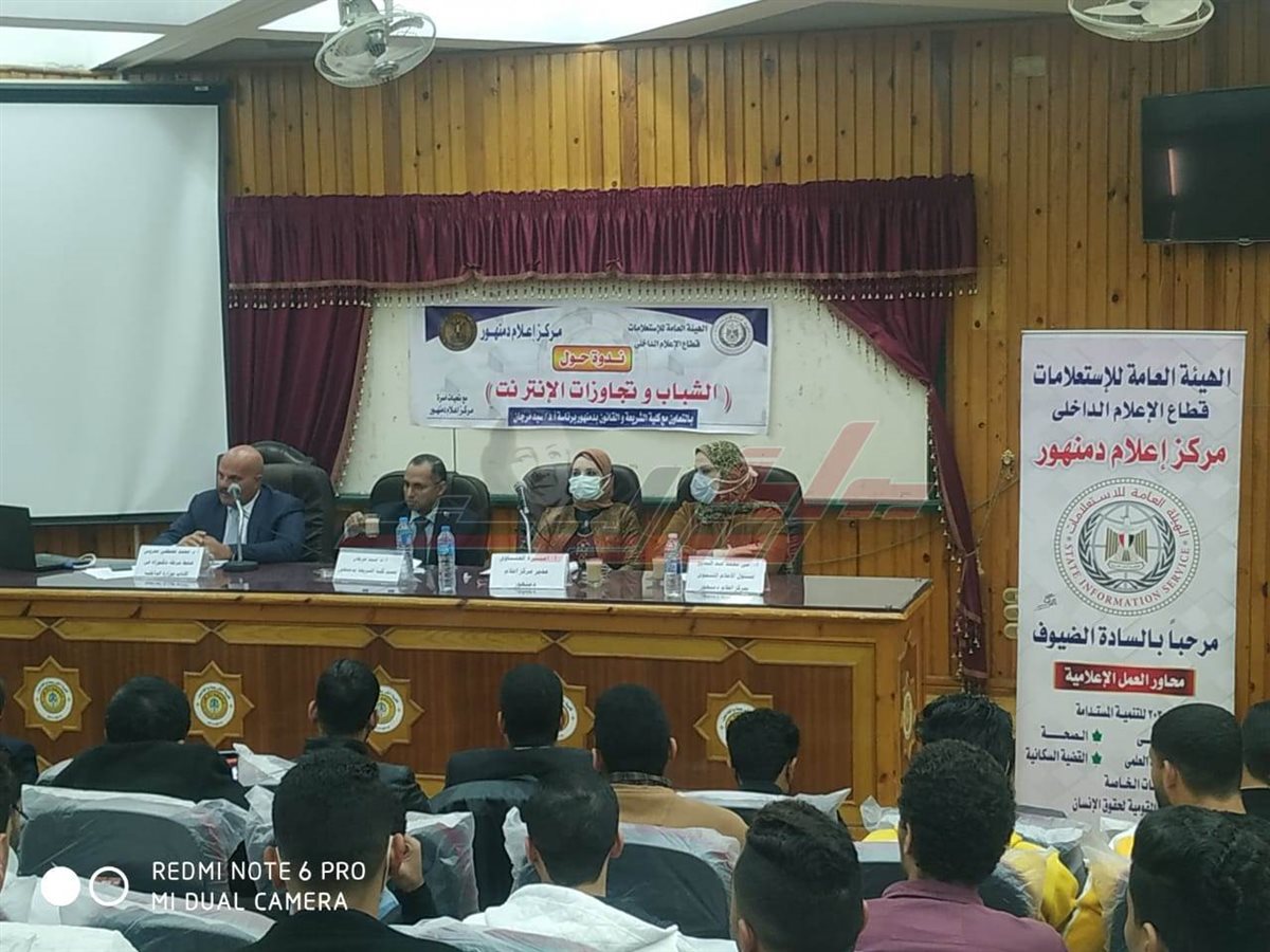 نظم مركز إعلام دمنهور برئاسة أميرة الحناوي بالتعاون مع كلية الشريعة والقانون بدمنهور ندوة إعلامية تحت عنوان "الشباب وتجاوزات الانترنت" حاضر فيها الدكتور السيد أحمد مرجان عميد كلية الشريعة والقانون بدمنهور والدكتور محمد مصطفى محروس مدرس بكلية الآداب جامعة الإسكندرية.