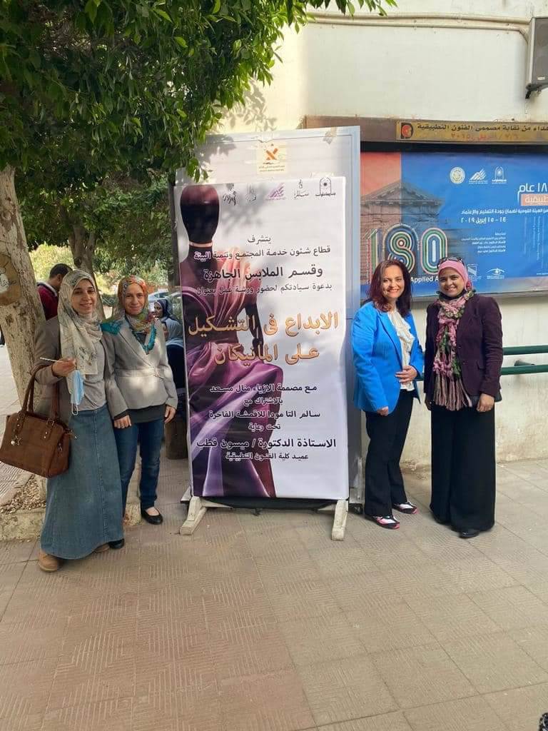 نظم قطاع خدمة المجتمع وتنمية البيئة بكلية الفنون التطبيقية جامعة حلوان، بالتعاون مع قسم الملابس الجاهزة وبرنامج الموضة وطباعة المنسوجات، ورشة عمل للتشكيل على المانيكان تحت عنوان الإبداع في التشكيل على المانيكان.