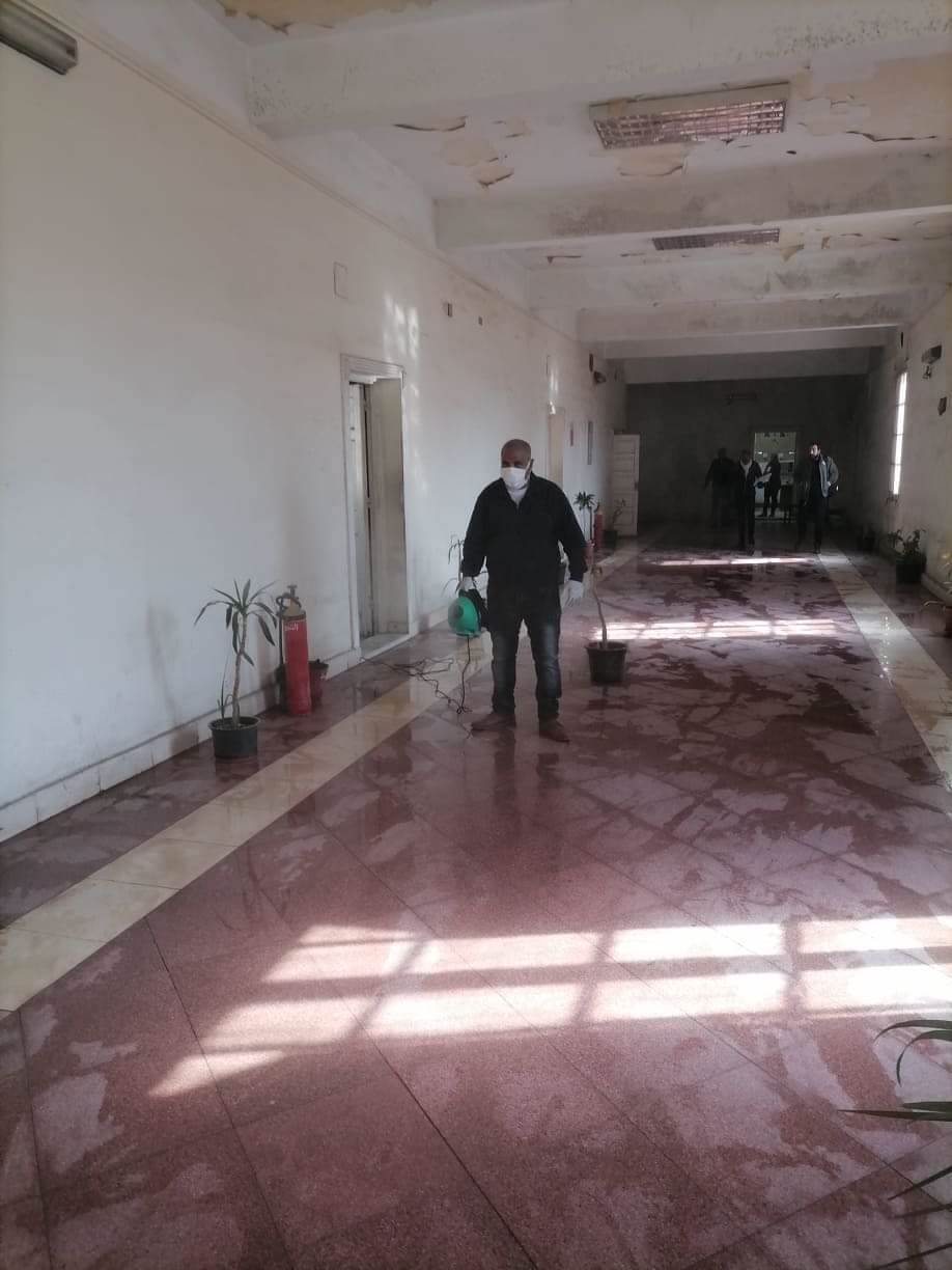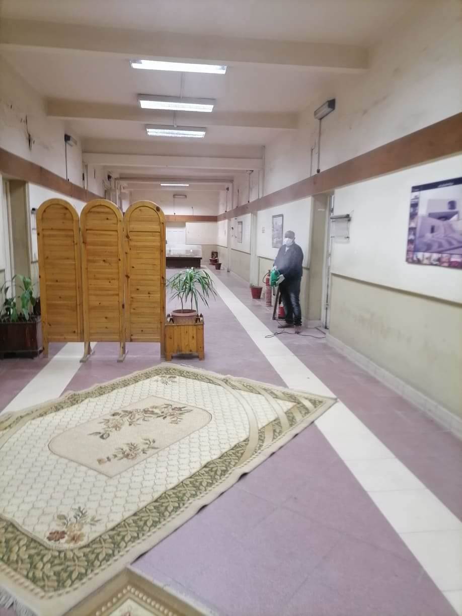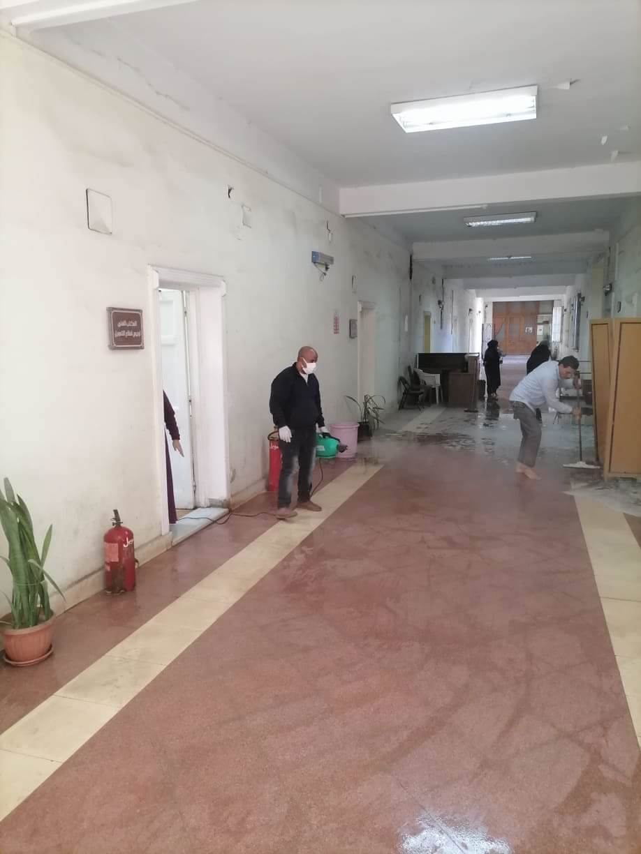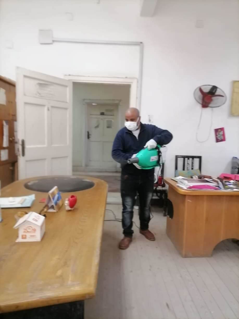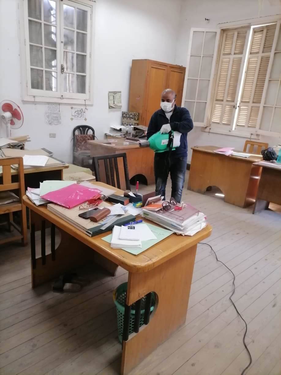 في ظل الإجراءات والتدابير الاحترازية والوقائية التي تتخذها الدولة بهذا الشأن تضمنت قائمة أعمالها رش وتطهير كافة المكاتب ورش الطرقات بمعطر جو برائحة الخوخ عقب تنظيفها ورشها بالماء لبعث الراحة والطمأنينة داخل نفوس العاملين شملت أعمال الرش والتطهير جميع الأسطح والمداخل والمخارج لجميع الأماكن الحيوية بكامل أرجاء القصر والأبواب والمسطحات والحمامات وغيرها من أماكن الملامسة للإنسان أعمال الرش والتطهير تمت وفقا للمعايير الدولية باستخدام مواد معتمدة من وزارة الصحة المصرية حفظ الله مصر أرضا وجيشا وشعبا.