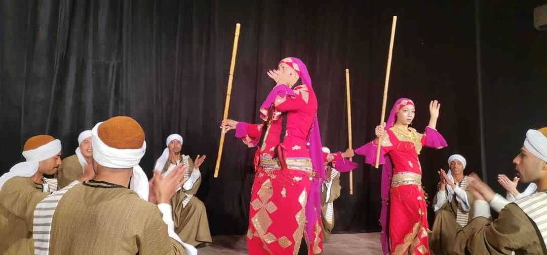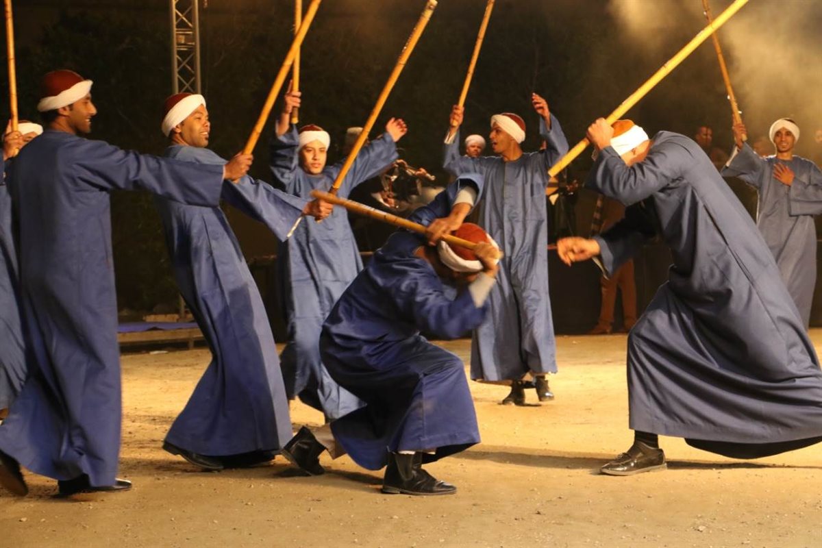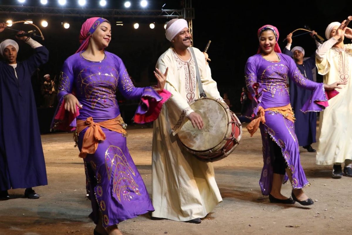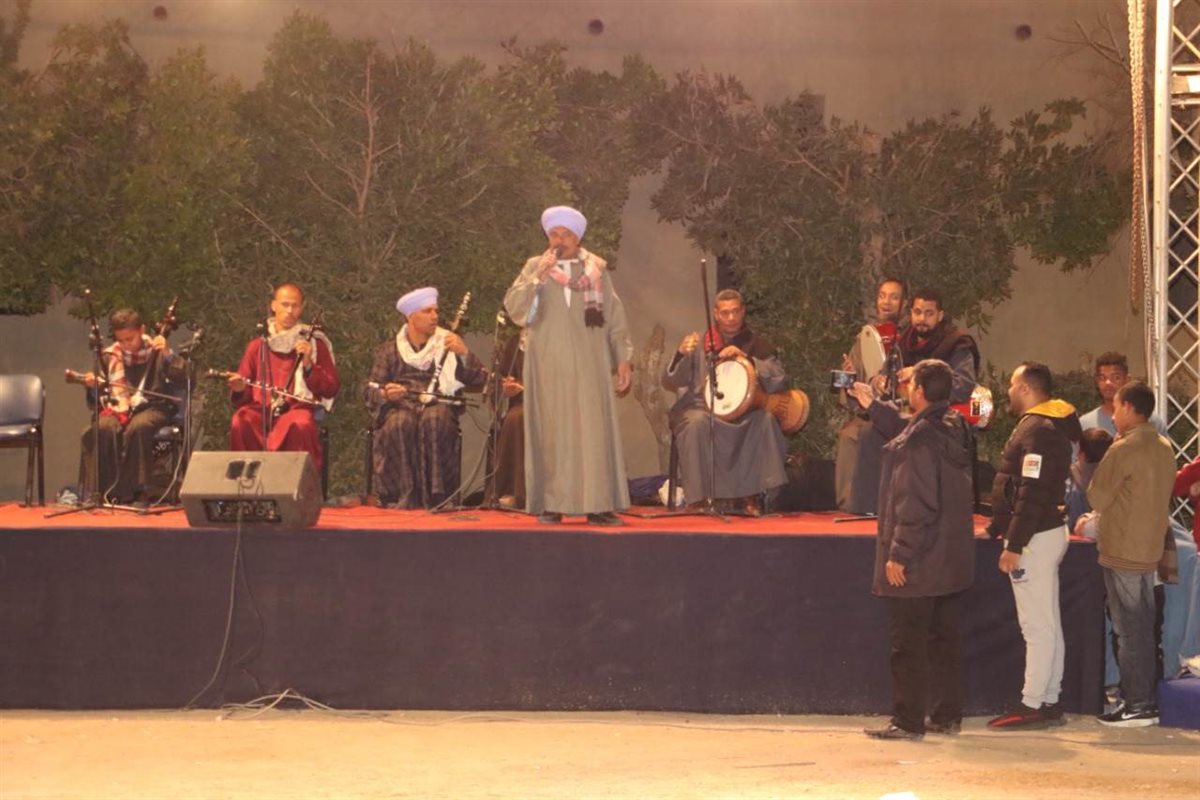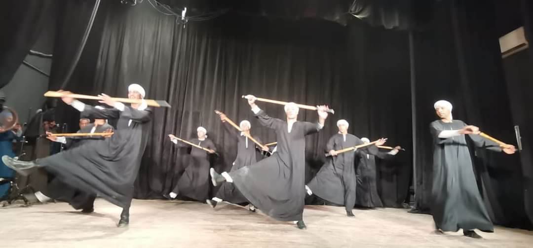 بينما قدمت فرقة بني سويف للفنون الشعبية استعراضاتها الغنائية "العصاية، الصرماتي، مبيض النحاس، النوبة".