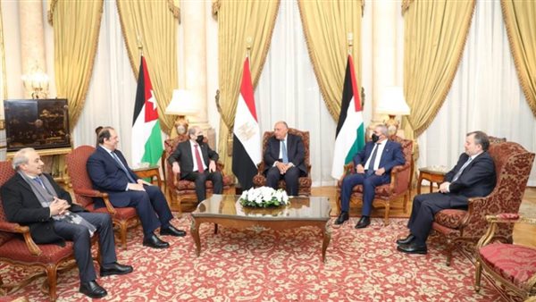 سامح شكري والوزير عباس كامل يستقبلان المشاركين بالاجتماع الوزاري لمصر والأردن وفلسطين