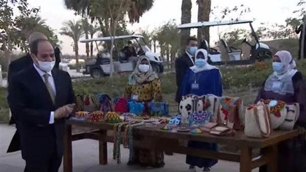 ووعد الرئيس السيسي ، المشاركين بمعرض الحرف التراثية في أسوان بإقامة معرض دائم لهم