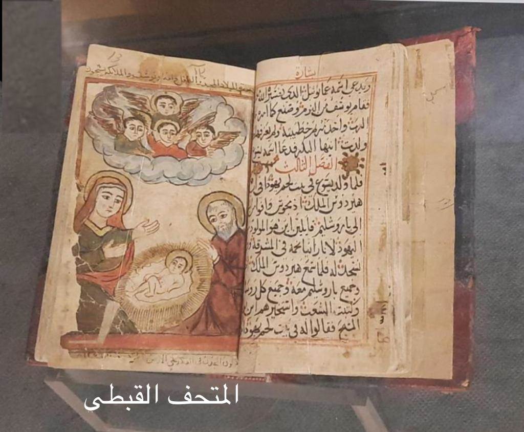 المتحف القبطي: يعرض مخطوط البشائر الأربعة (القديس متى -القديس مرقس–القديس لوقا- القديس يوحنا) باللغة العربية، ويظهر السيد المسيح بين السيدة مريم العذراء والقديس يوسف النجار وفوقهم الملائكة.