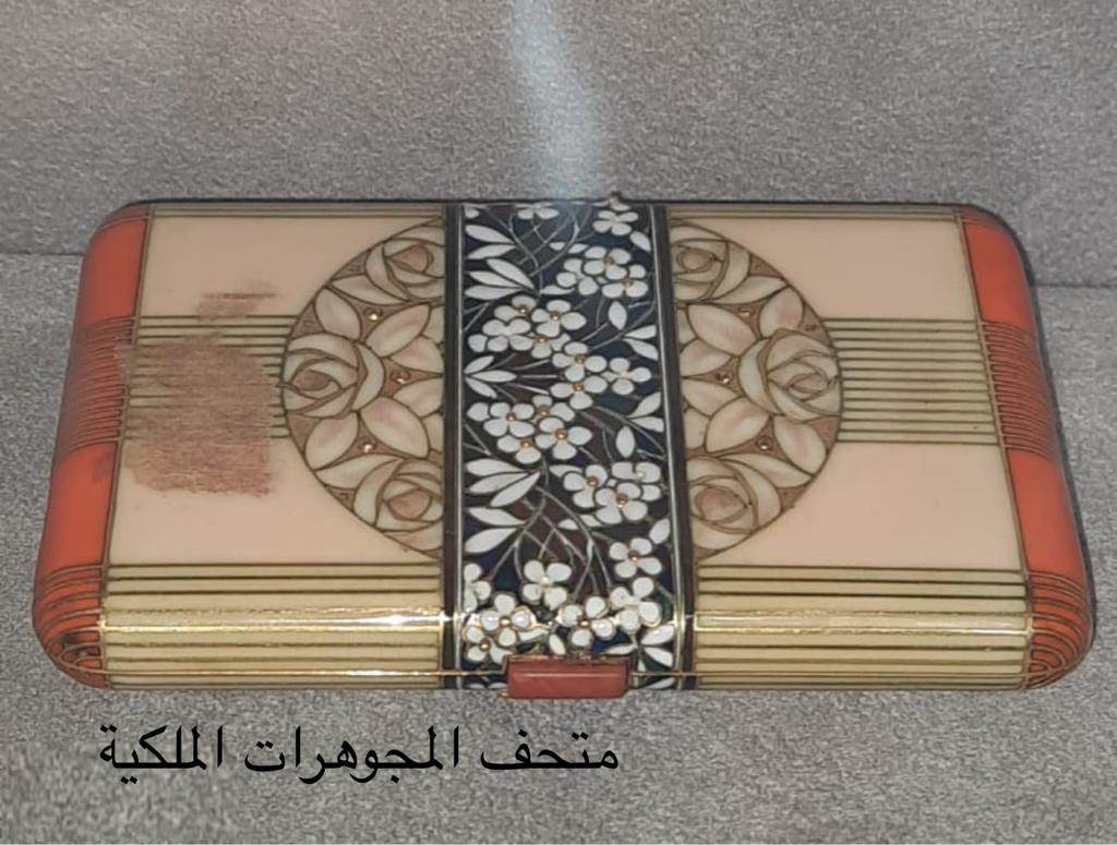 متحف المجوهرات الملكية: يعرض علبة سيجار مصنوعة من الذهب ومحلاه بالمينا الملونة وقفل العلبة من حجر المرجان.