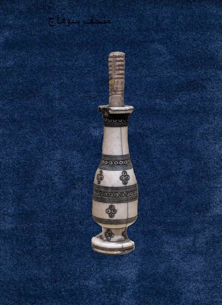متحف آثار سوهاج القومي: يعرض مكحلة بالمرود مصنوعة من العاج، ومزخرفة من الخارج بخطوط.