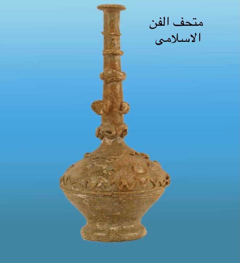 متحف الفن الإسلامي: يعرض قمقم من العصر الفاطمي مصنوع من الزجاج عليه زخارف.