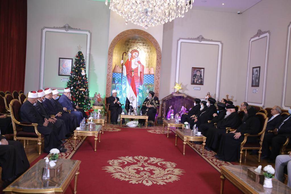 ترأس الإمام الأكبر الدكتور أحمد الطيب، شيخ الأزهر الشريف، اليوم الثلاثاء، وفد الأزهر، في زيارة إلى مقر الكنيسة الكاتدرائية المرقسية بالعباسية، لتهنئة البابا تواضروس الثاني، بابا الإسكندرية وبطريرك الكنيسة القبطية الأرثوذكسية، والإخوة المسيحيين بمناسبة «أعياد الميلاد».