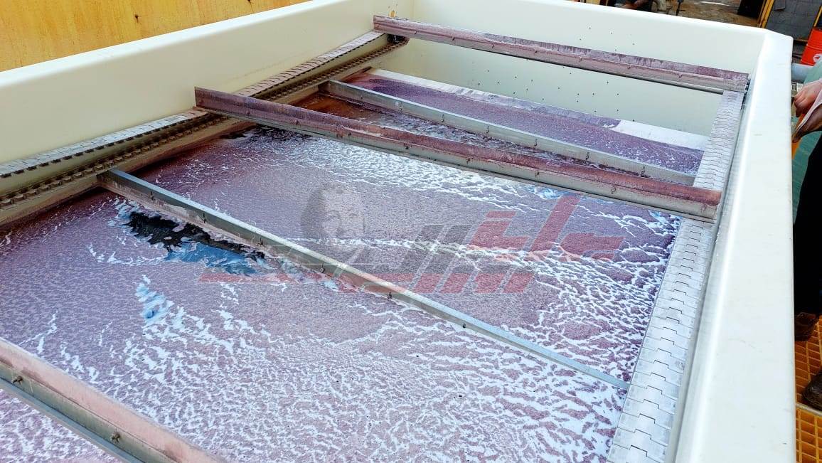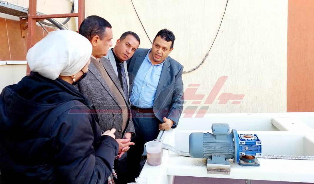 واستمعا لشرح توضيحي حول تصميم محطتي معالجة الصرف الصناعي بتلك الشركات، والتي تعمل بسعة قصوى تصل ل ۷۰م٣/ ساعة لكل منهما بما يتناسب مع معدل مياه الصرف الصناعي الخارج من المصبغة وطريقة تركيب وعمل الوحدتين كالآتي شبكات تصفية لحجب العناصر الصلبة "بلاستك وخيوط"، تنك تجميع وترسیب وتبريد بسعة 450 م٣، طلمبة سحب رئيسية للرفع من تنك التجميع إلى محطةالمعالجة بمعدل ۷۰م٣/ ساعة، أنبوب حقن مواد المعالجة "هیدركسيد الكالسيوم" بطول40م، تنك التقليب، لضمان خلط مواد المعالجة وبداية تكوين التخثر لفصل الأحمال الملوثة للماء، تنك حقن البوليمر المسؤول عن تجميع العوالق الموجودة في الماء بعد عملية التخثر، وحدة خلط المياه بالهواء المضغوط لتكوين فقاعات تحيط بالعوالق المتجمعة لتخفيف وزنها، تنك التطويف، حيث تطفوا فيه العوالق بفعل فقاعات الهواء أعلى سطح الماء مكونة الحمأة حيث يتم تجميعها بواسطة قواشط لتنك خاص بها، وحدة كبس الحمأة: ويتم فيه عصر الحمأه للتخلص من أكبر كمية ممكنة من المياه الموجودة في الحمأة لتعود المياه لتنك التجميع، بينما تخرج الحمأة من الوحدة لتنقل إلى مخزن المخلفات الخطرة حيث يتم تسليمها إلى شركة نقل المخلفات الخطرة.