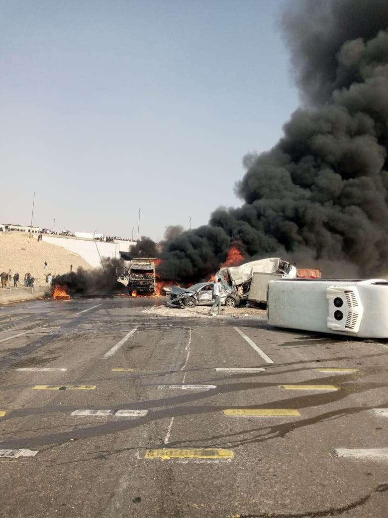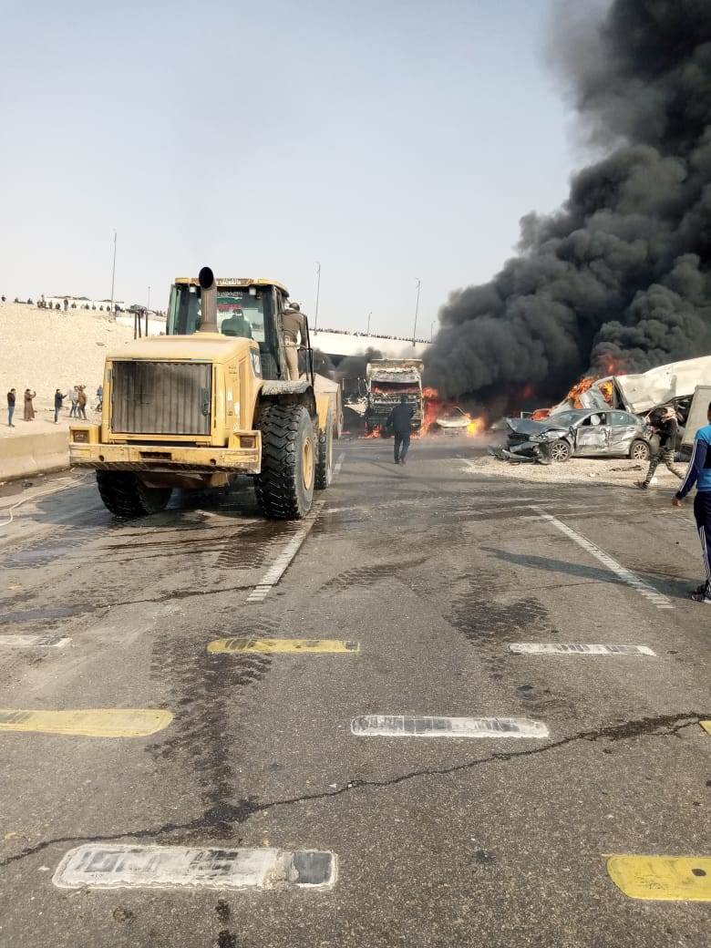 كما تم الدفع بـ١٠ سيارات إسعاف وقوات الحماية المدنية، التي تمكنت من السيطرة على النيران التي اشتعلت في السيارات بموقع الحادث، وتم نقل ٦ مصابين إلى مستشفى حلوان العام، ومصاب إلى مستشفى البنك الأهلي، فيما تم نقل مصاب آخر إلى مستشفى خاص.