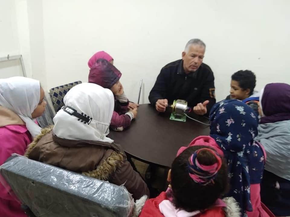 كما يواصل بيت ثقافة المراغة في تقديم ورشة نادي العلوم للمدرب السيد احمد بخيت والذي فسر طريقة لف الموتور وشرح طريقة عمله.