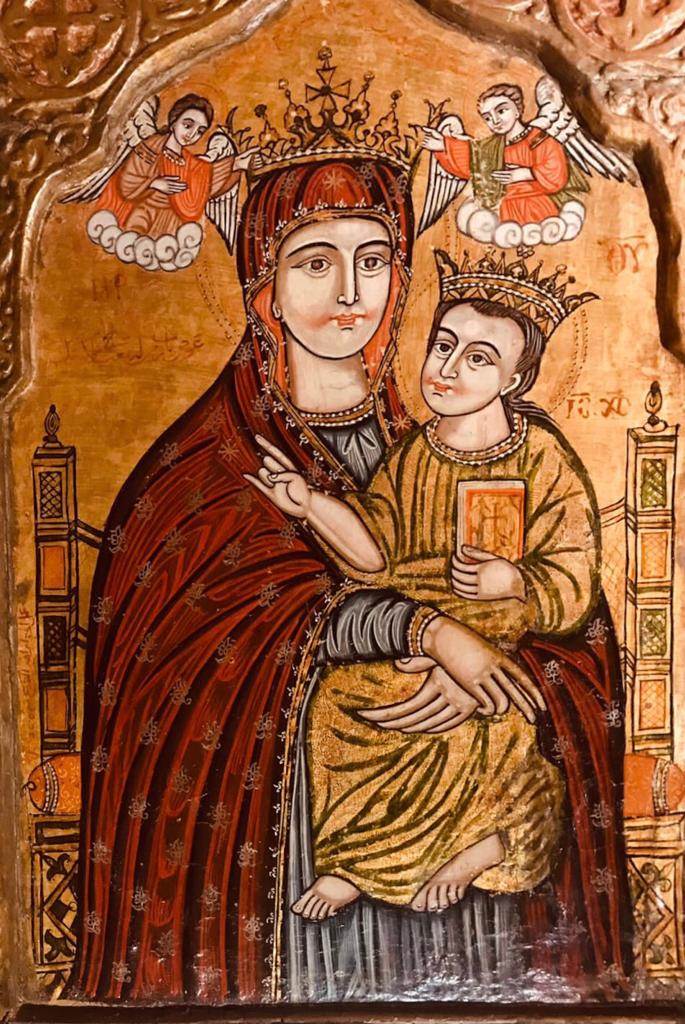 وأيقونة رئيس الملائكة غبريال يحمل بيده اليمنى لفافة غير ملفوفة عليها نص باللغة العربية، ويمسك بيده اليسرى جلوب. وأيقونة تُمثّل مشاهد سيرة حياة السيدة العذراء مريم تصورها في المنتصف تحمل يسوع الطفل، وعلى كلا جانبيّ رأس السيدة مريم من أعلى يوجد اثنين من الملائكة يضعان التاج على رأسها، ويحيط بهما عشرة مشاهد من حياتها. وأيقونة أخرى تصور الهروب إلى مصر، حيث تظهر السيدة العذراء مريم والطفل فوق الحمار، وخلفهم يوسف النجار.