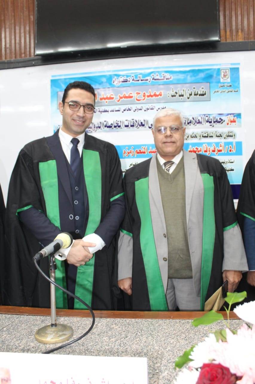 وافقت كلية الحقوق جامعة القاهرة علي منح الباحث"ممدوح عمر عبدالله محمد"، المدرس المساعد بكلية الحقوق جامعة حلوان، على درجة الدكتوراة في القانون الدولي الخاص بتقدير جيد جدا، للرسالة التي تقدم بها والتي حملت عنوان "حماية العلامات التجارية في العلاقات الخاصة الدولية"، وهي الرسالة التي تعد الأولى من نوعها في مصر والعالم العربي.