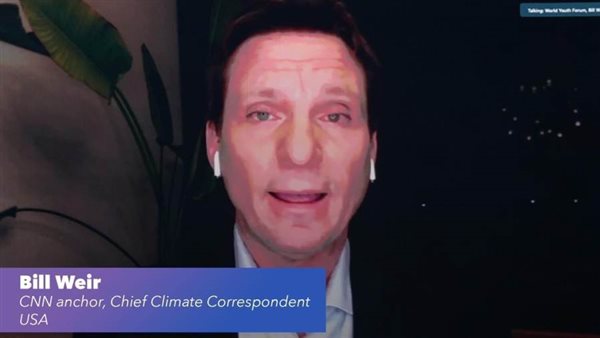 شارك بيل واير، مراسل شبكة CNN الأمريكية، خلال مشاركته في جلسة "الطريق من جلاسكو إلى شرم الشيخ لمواجهة تغيرات المناخ"، ضمن فعاليات النسخة الرابعة من منتدى شباب العالم، وأشار أنه خلال زيارته إلى أيسلندا لاحظ تغيرات مناخية مثل الحرائق والأعاصير وذوبان الجليد في القطب الشمالي، هذا بالإضافة إلى زيارته إلى مختلف بقاع العالم التي لاحظ من خلالها الكثير من الكوارث الطبيعية التي خلّفها التغير المناخي، وهو الأمر الذي وصل إلى حد وقوع عدد كبير من الوفيات جرّاء تلك التغيرات غير المحسوبة وغير المتوقعة، والأخطر من ذلك أن تلك الكوارث تحدث كل يوم بالفعل.