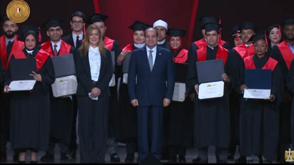 وكرم الرئيس عدد من خريجي البرنامج الرئاسي الذين اثبتوا تميز كبير، تنوعوا بين مهندسين ودعاة ازهريون ومحامين عموم وطيارين ومختلف التخصصات.