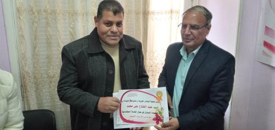 وفى ختام الندوة .. قام محمود الدقدق رئيس مجلس إدارة جمعية البشائر الخيرية بتكريم قافلة الإعلام وهم : عبد الفتاح الإمام وشريف عبد الرحمن ونجوى ابراهيم ومنحهم شهادات تقدير على جهودهم فى إقامة لقاءات التوعية وخدمة المجتمع .