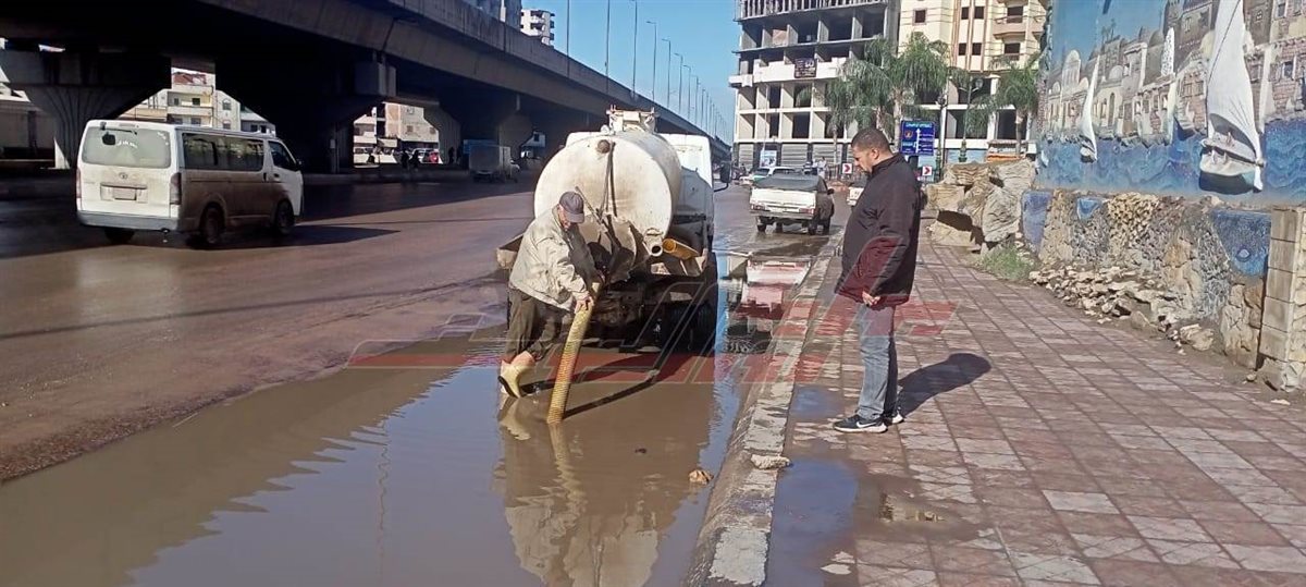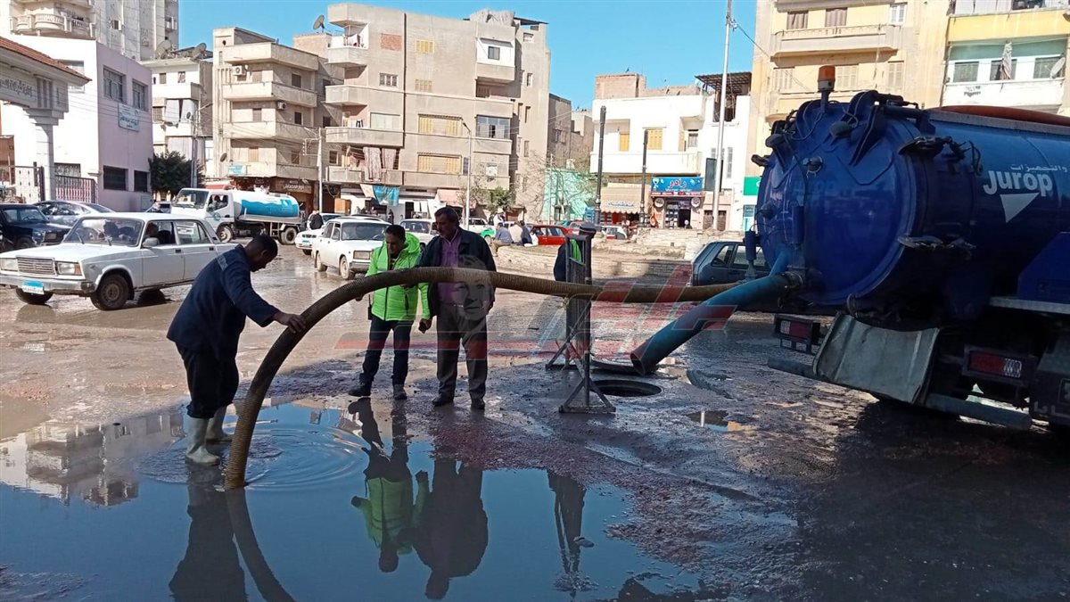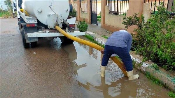 رفع تراكمات وتجمعات مياه الأمطار بشوارع البحيرة