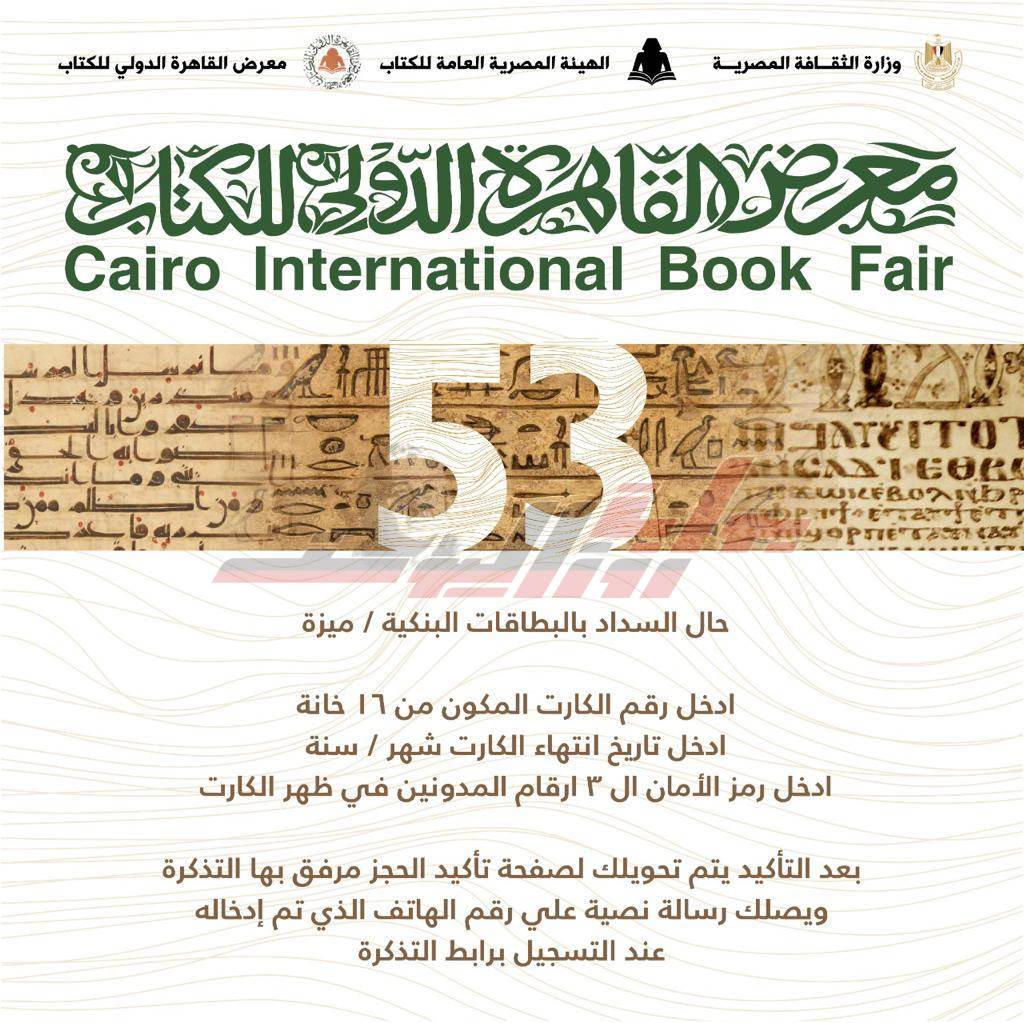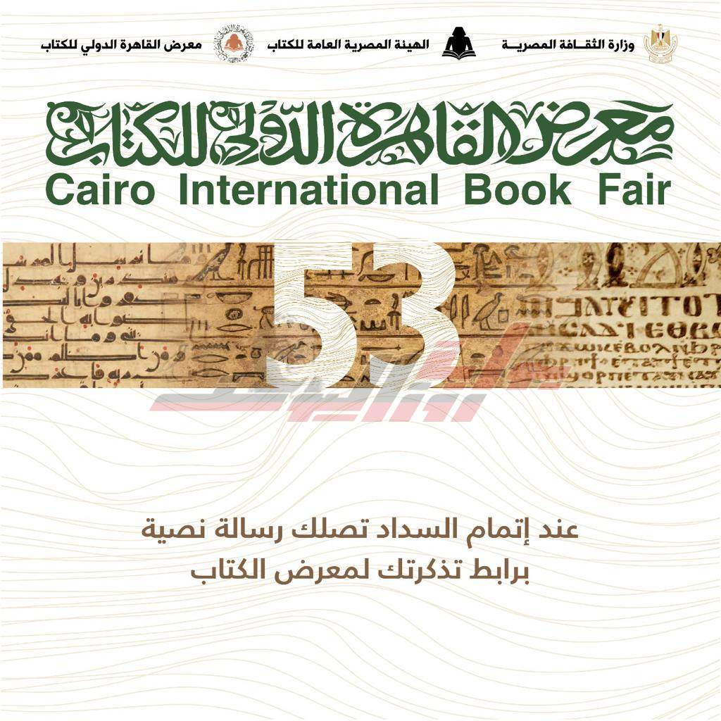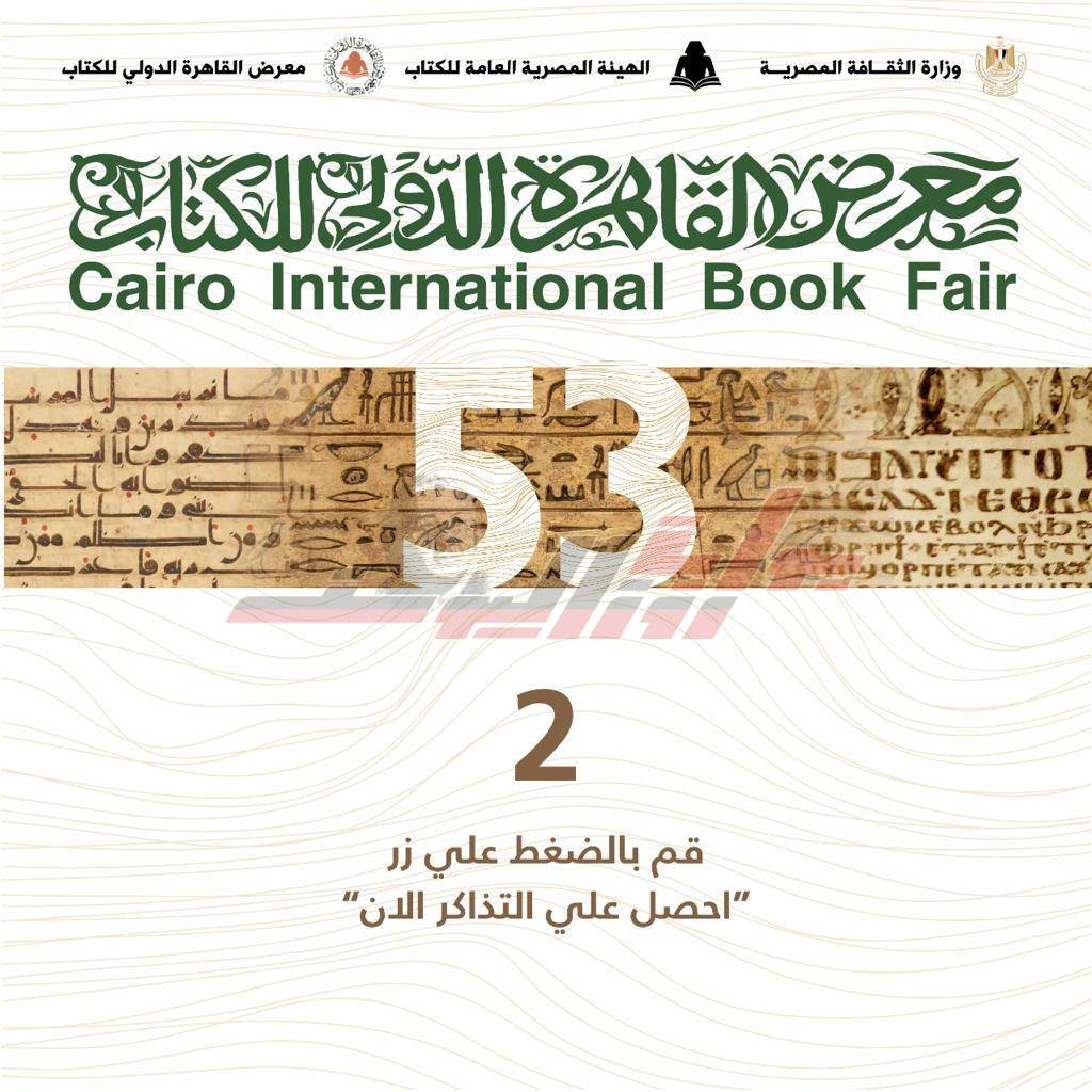 أعلنت الفنانة الدكتورة ايناس عبد الدايم وزيرة الثقافة، بدء حجز تذاكر دخول الدورة 53 من معرض القاهرة الدولي للكتاب الكترونيا والتي تأتي تحت شعار هوية مصر.. الثقافة وسؤال المستقبل، وتُقام في الفترة من 26 يناير حتى 7 فبراير المقبل، بمركز مصر للمؤتمرات والمعارض الدولية، وتحل عليها دولة اليونان ضيف شرف، واختارت الكاتب يحيى حقّي شخصية المعرض، والكاتب عبد التّواب يوسف شخصية معرض كتاب الأطفال.