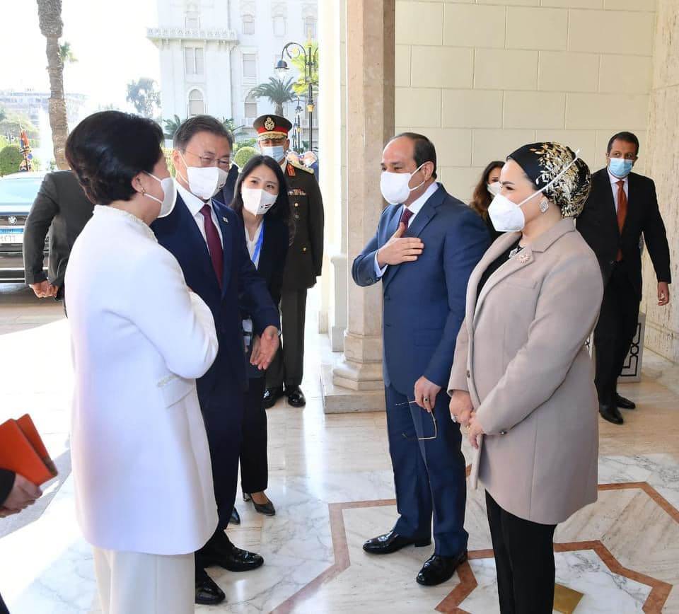 استقبل الرئيس عبدالفتاح السيسي، والسيدة قرينته، اليوم بقصر الاتحادية، الرئيس موون جاي إن، رئيس جمهورية كوريا الجنوبية، والسيدة قرينته، حيث تم إجراء مراسم الاستقبال الرسمي، وعزف السلامين الوطنيين، واستعراض حرس الشرف.