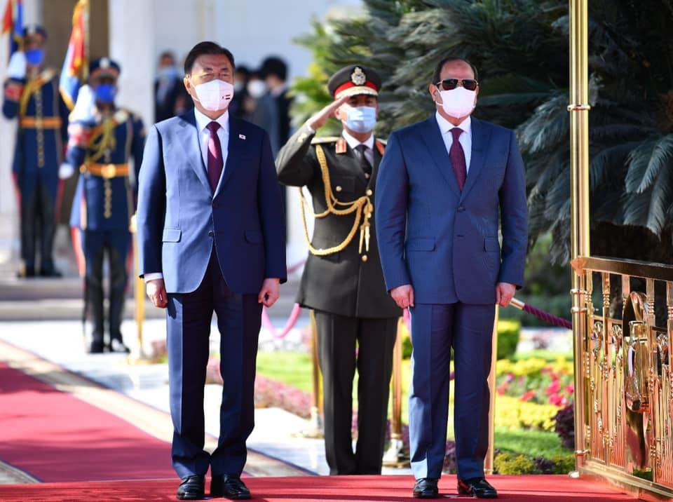 من جانبه؛ أعرب الرئيس الكوري عن سعادته بزيارة مصر للمرة الأولى، موجهاً الشكر للسيد الرئيس على حفاوة الاستقبال وكرم الضيافة، ومعرباً عن الحرص على استمرار التنسيق والتشاور بين البلدين الصديقين في مختلف المجالات، وكذلك التطلع لتطوير وتعزيز علاقات كوريا الجنوبية مع مصر، لا سيما في ظل دورها المحوري بقيادة السيد الرئيس لإرساء دعائم الاستقرار والأمن في منطقة الشرق الأوسط والقارة الإفريقية، بالإضافة إلى اهتمام الجانب الكوري بزيادة استثماراته في المشروعات التنموية الكبرى ومشروعات البنية الأساسية في مصر، وكذا المشروعات الأخرى في جميع القطاعات.