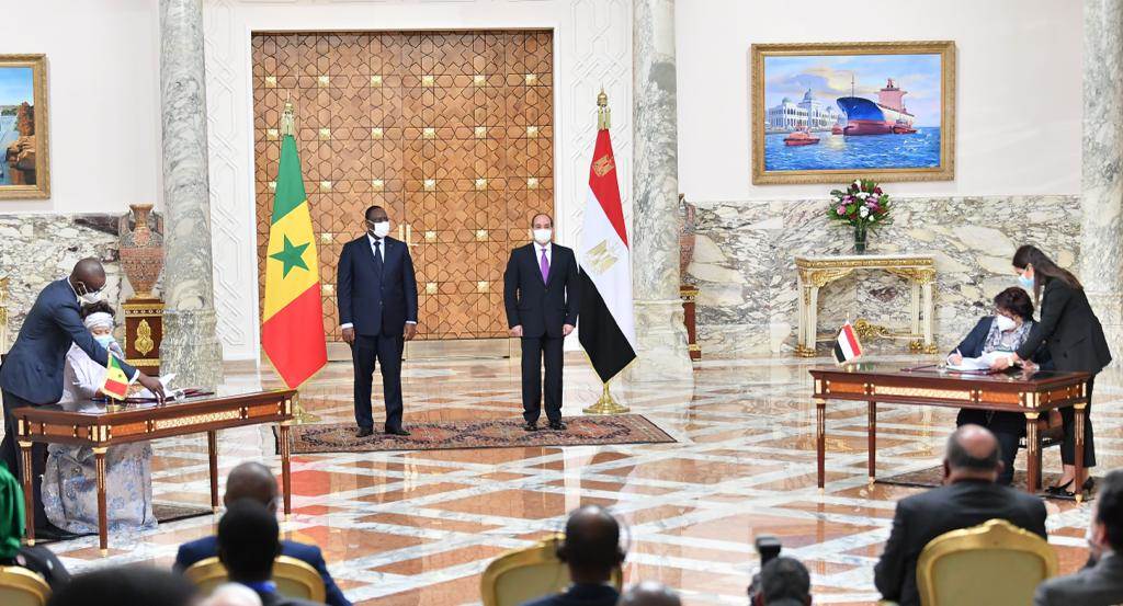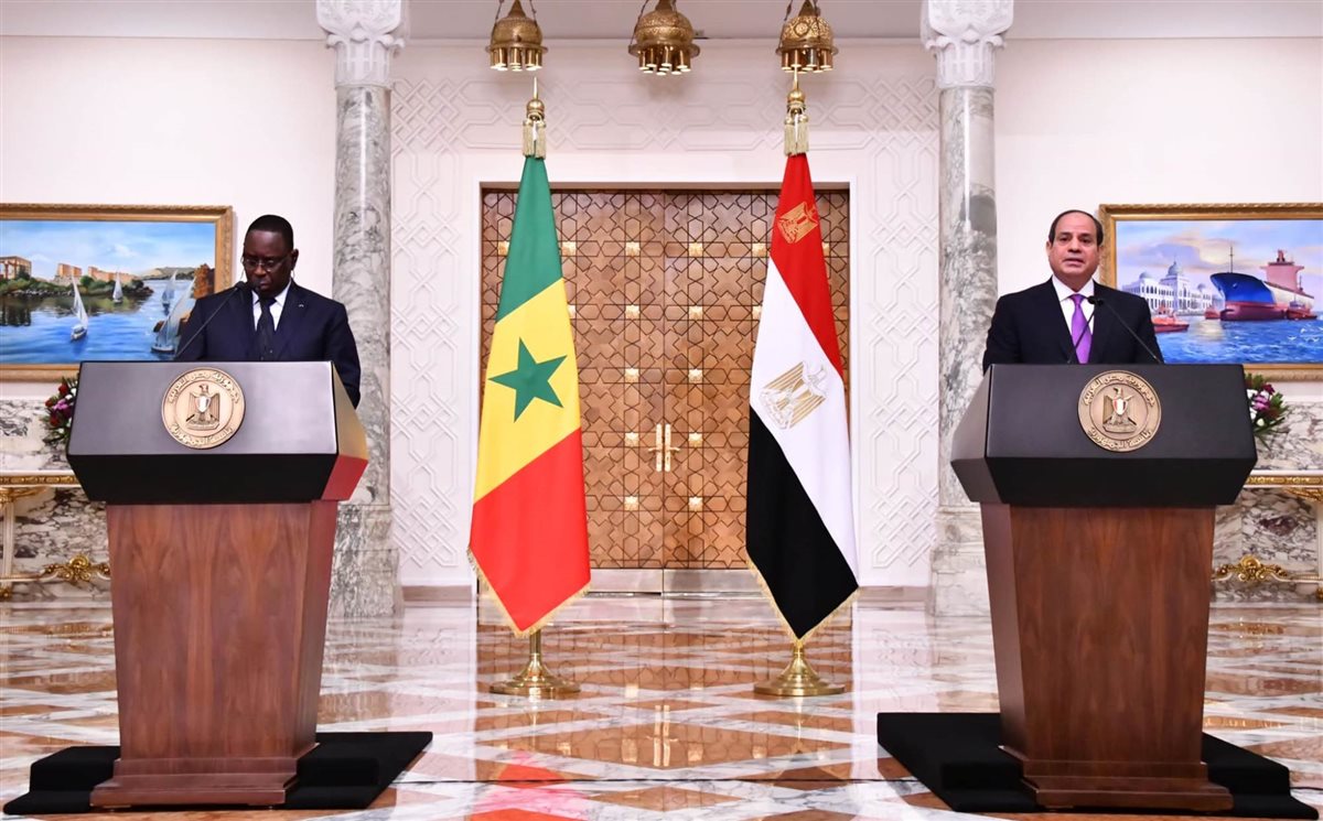 عقد الرئيس عبد الفتاح السيسي، رئيس الجمهورية، مؤتمرا صحفيا، اليوم السبت، مع نظيره ماكي سال، رئيس جمهورية السنغال، وذلك بقصر الاتحادية.