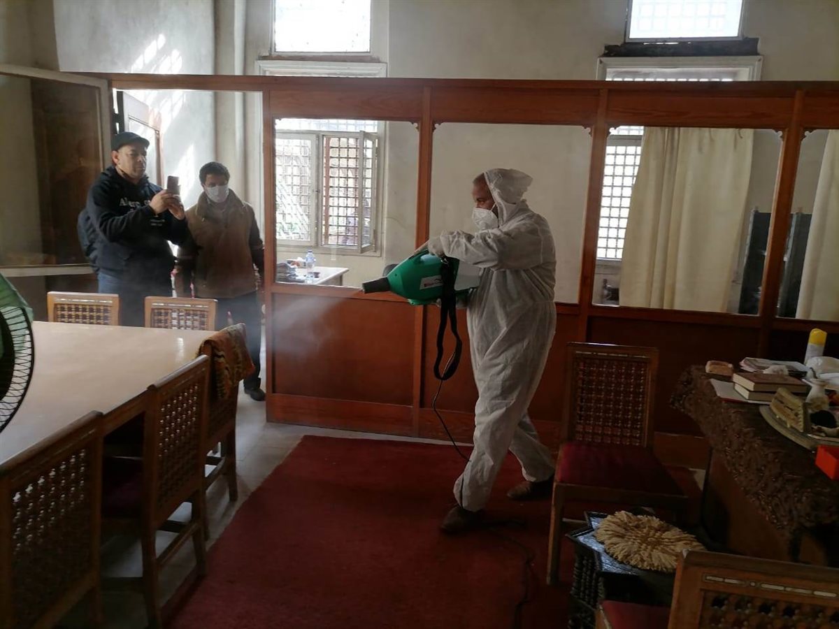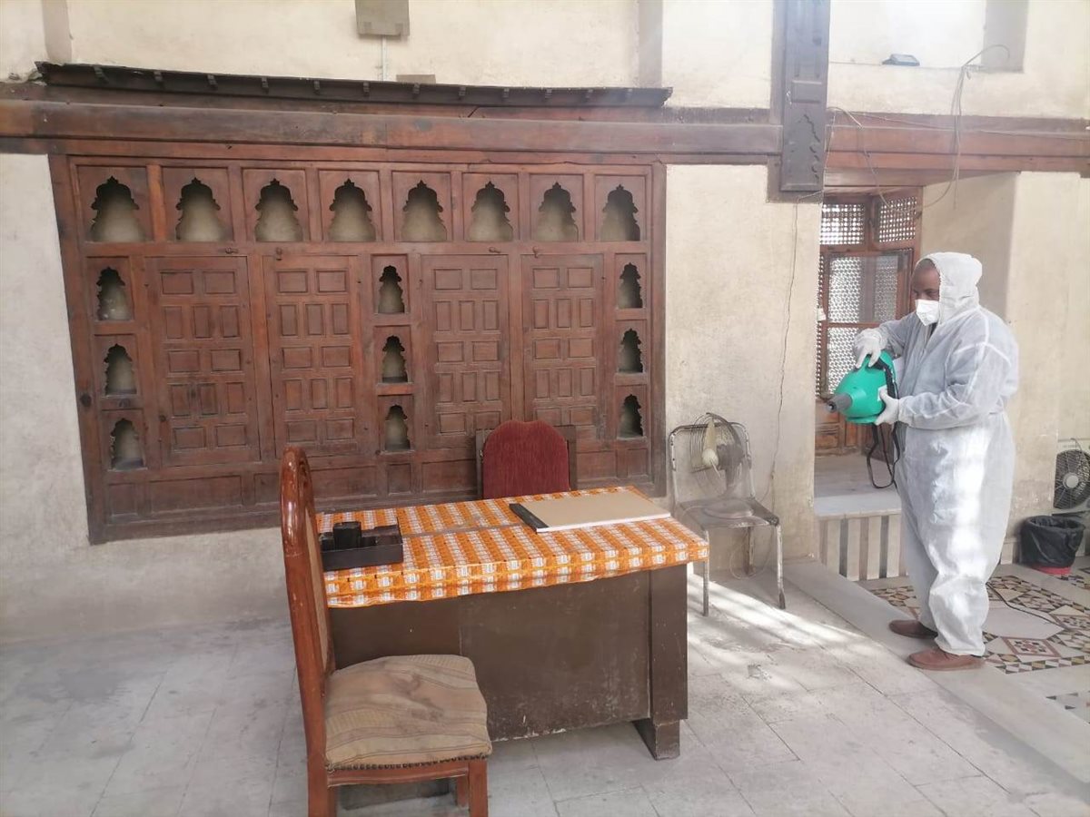 فى ضوء توجيهات رئيس الجمهورية، باتخاذ اللازم نحو استمرار حملات الرش والتطهير والتعقيم والإجراءات الوقائية بكل دقة وتطبيقا لقرار السيد الدكتور أمين عام المجلس الأعلى للآثار رقم “4444” الصادر بتاريخ 10/10/2021 بشأن تشكيل لجنة السلامة والصحة المهنية وتأمين بيئة العمل، لمتابعة أعمال الرش والتطهير والتعقيم وتطبيق الإجراءات الاحترازية والوقائية لمجابهة فيروس كورونا، فقد واصلت اللجنة أعمالها اليوم، برش وتطهير كافة المقاصد والمزارات السياحية بشارع المعز برئاسة السيد عاطف عبدالله محمد المشرف العام على إدارة السلامة والصحة المهنية وعضوية كل من: السيد أحمد مخيمر عيد مشرف السلامة والصحة المهنية لقطاع الآثار المصرية والسيد محمود عبد القادر حسان مشرف السلامة والصحة المهنية لقطاع الآثار الإسلامية والقبطية والسيد الحسينى أحمد مسؤول السلامة والصحة المهنية شمال القاهرة والسيد محمد فوزى مسؤول السلامة والصحة المهنية جنوب القاهرة.