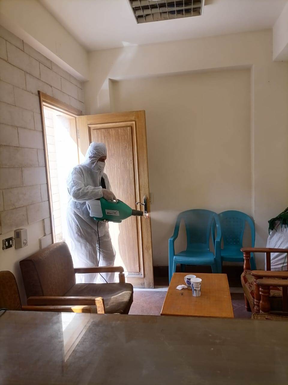 أعمال التعقيم تمت وفقا للمعايير الدولية لإجراءات التطهير باستخدام مواد معتمدة وآمنة حرصا على سلامة وصحة العاملين.