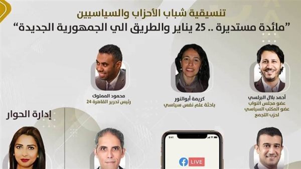 تعقد تنسيقية شباب الأحزاب والسياسيين، غدا الجمعة، الساعة ٧ مساء مائدة مستديرة بمناسبة مرور 11 عاما علي قيام ثورة 25 يناير تعرض عبر الصفحة الرسمية لتنسيقية شباب الأحزاب والسياسيين بموقع التواصل الاجتماعي فيسبوك في قراءة لمطالب الثورة وما تحقق منها، وما هو مأمول أن يتحقق كذلك الكشف بشكل واضح وصريح عن كافة الإصلاحات والإنجازات المادية وغير المادية علي كافة المستويات الاجتماعية والسياسية منذ تولي الرئيس عبدالفتاح السيسي الحكم في 2014 حتي الآن، بالإضافة إلى الفترة الماضية منذ قيام الثورة في يناير ٢٠١١ مرورا بفترة حكم جماعة الإخوان الإرهابية، وتقييم النظام السابق والنظام الحالي خاصة وإننا تفصلنا ساعات عن ذكرى تخلي الرئيس الأسبق حسني مبارك عن الحكم في 11 فبراير ٢٠١١ ونتعرف من خلال هذا اللقاء الجامع لشخصيات تعبر عن المعالم الهامة والقوية لثورة 25-يناير، علي كافة الأراء المؤيدة بشدة لما حدث في ٢٥ يناير، والمؤيدة بتحفظ والمعارضة نظرا لما أعقبها من أزمات وخلل في الشارع، وتدهور في عدد من القطاعات المهمة أبرزها السياحة وتأثيرها على الوضع الاقتصادي.